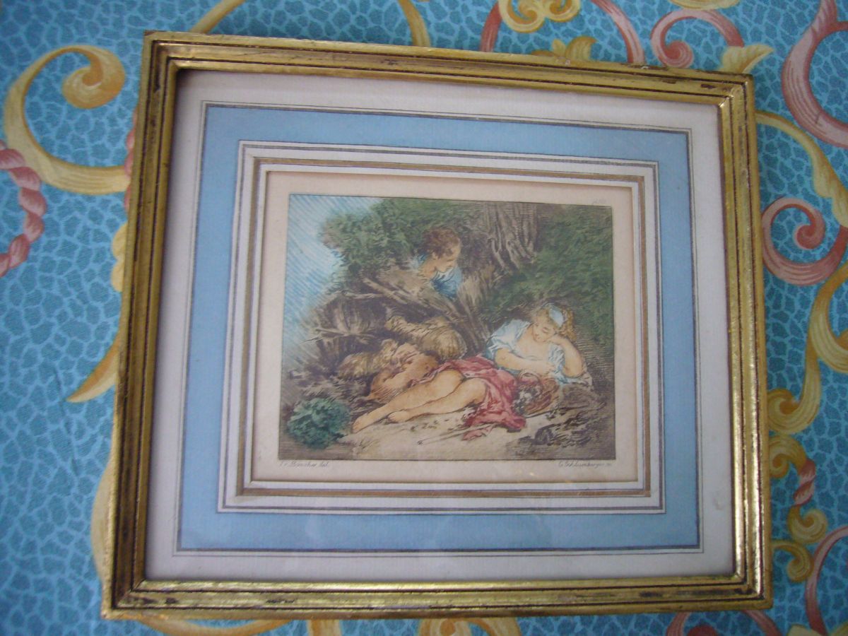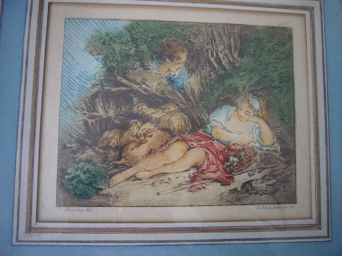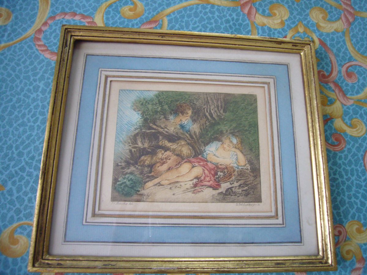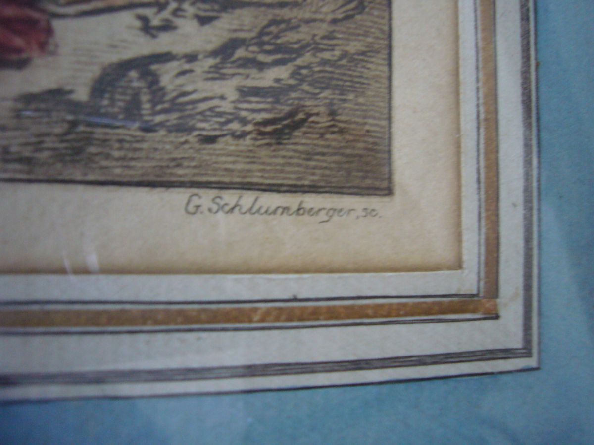 Gravure XIXeme S.G. de Schlumberger, cadre bois doré