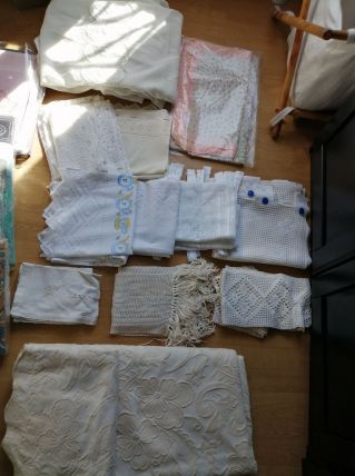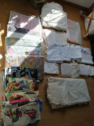Je vend des rideaux, napperons, nappes, parures de draps neufs, et housses de couette enfants, n'ayant aucune idée du prix j'attends vos propositions.