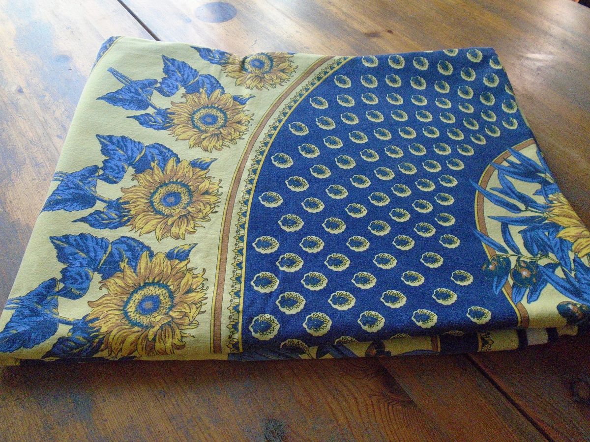 Nappe en coton, imprimé provençal, tournesols et branches d'olivier
