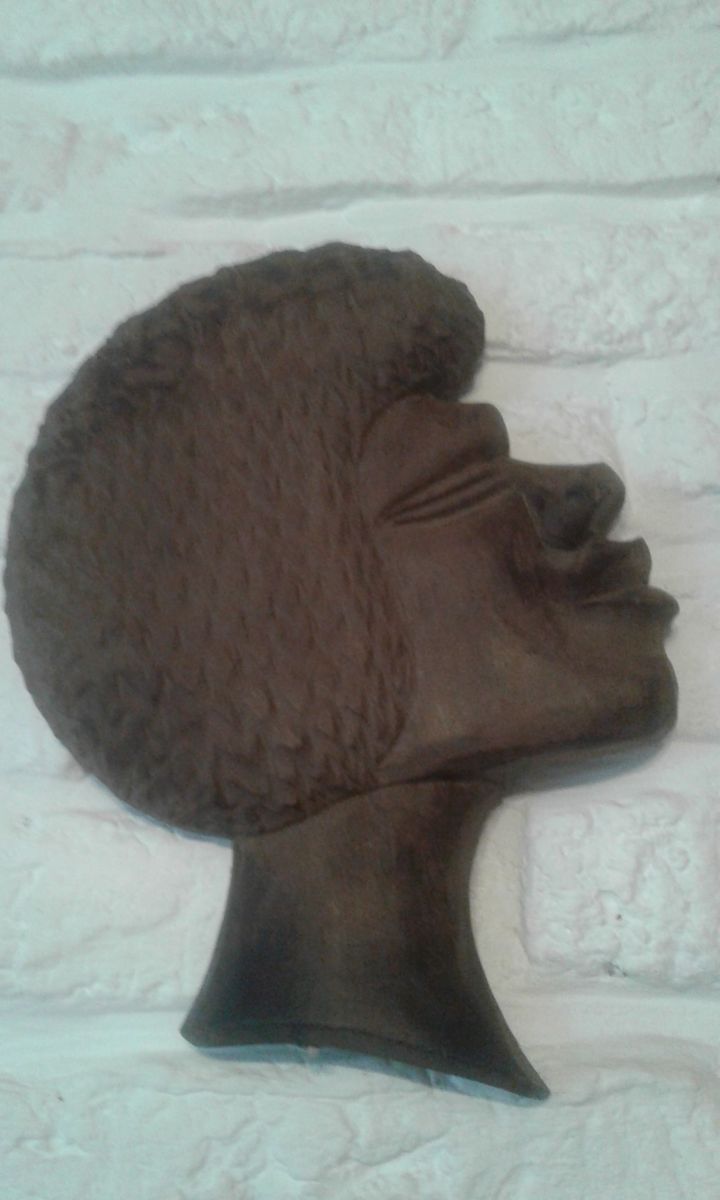 Face de visage en bois africaine année 60 70, il mesure 22 cm de hauteur et 17 cm de largeur, objet rare.