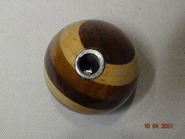 Boule de levier de vitesse vintage en bois multicolore (3 essences de bois différents; noyer, frêne, bois exotique), diamètre 44 mm, filetage M 10. Donne une touche rétro et stylée à votre voiture.