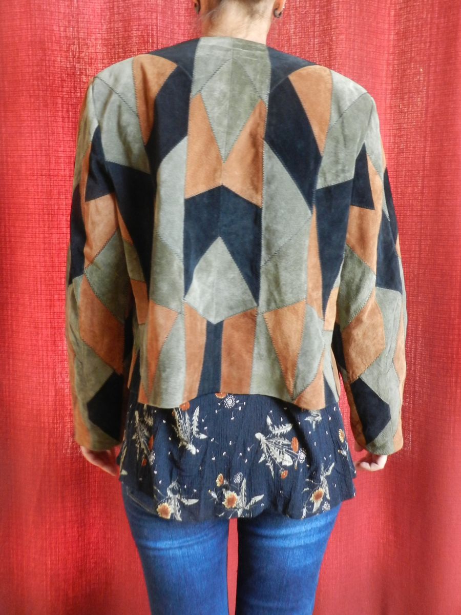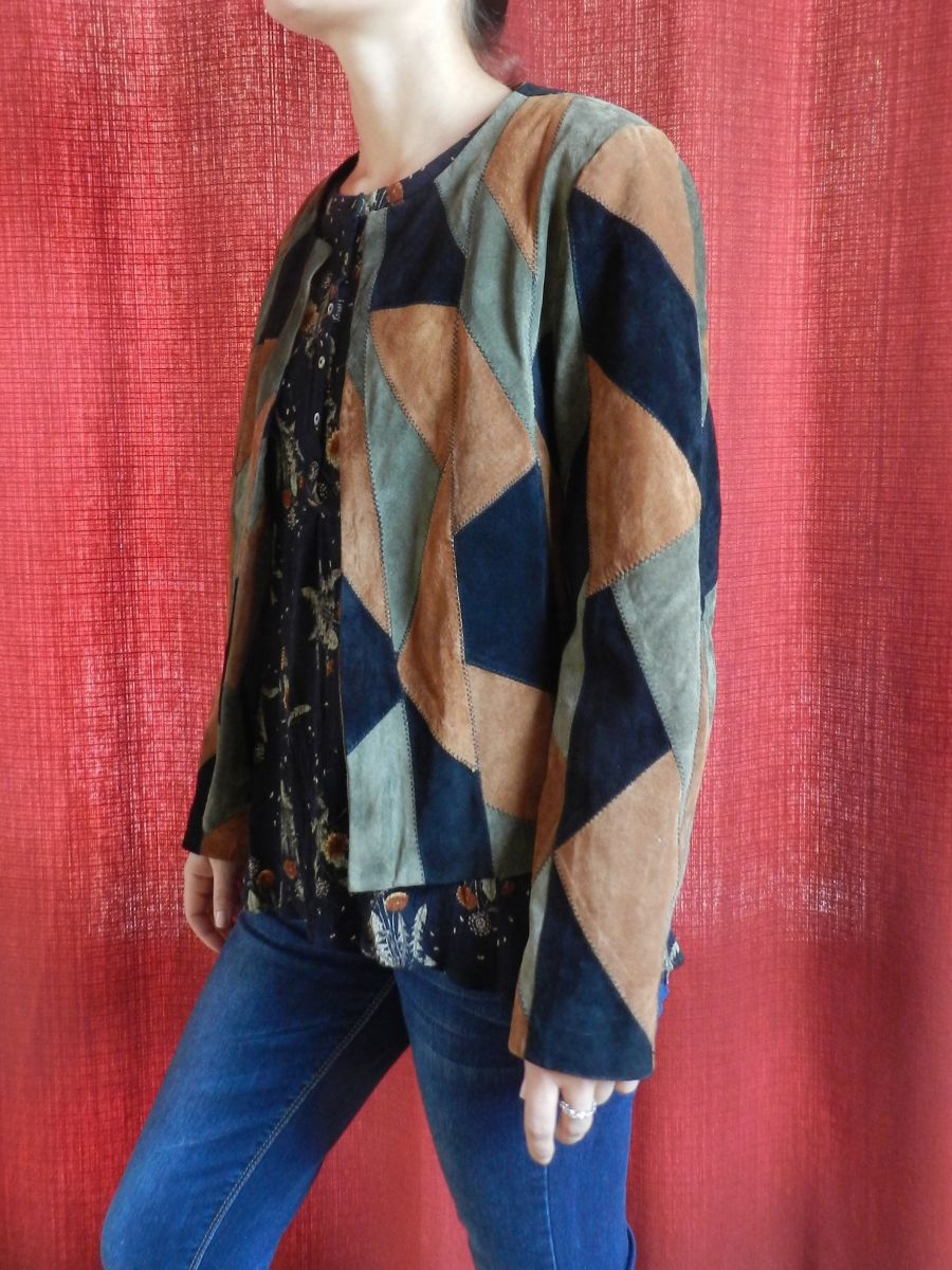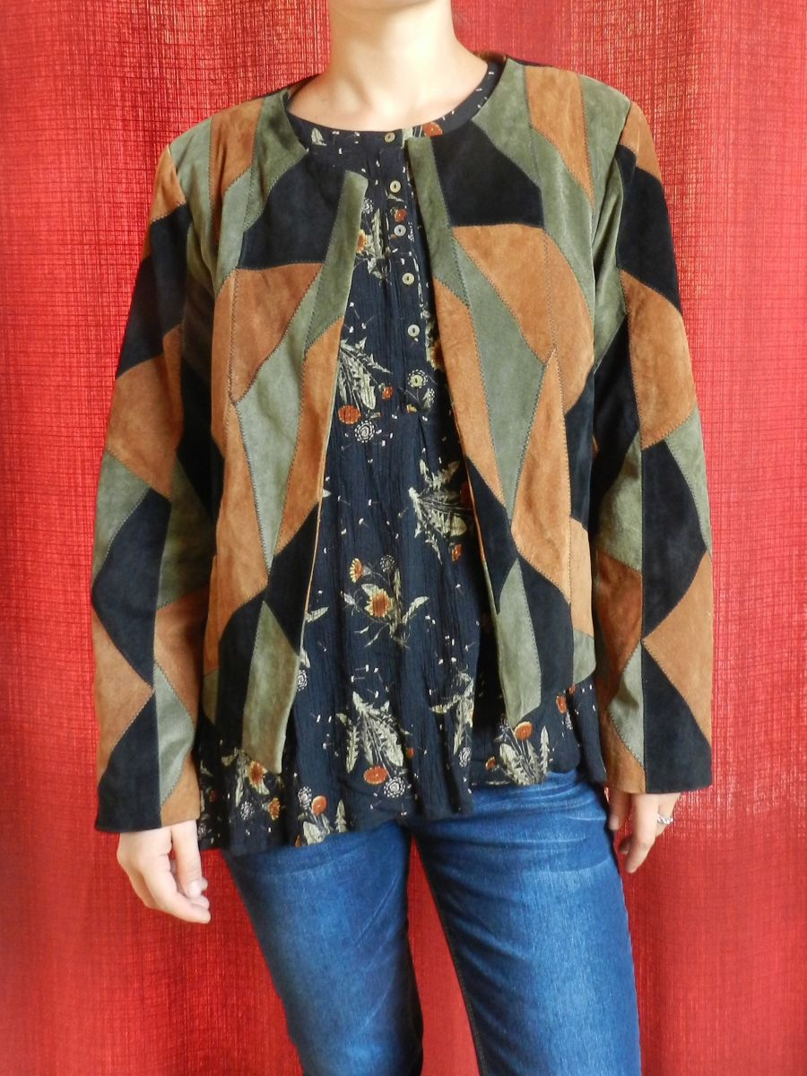 Magnifique patchwork multicolore, noir, marron clair et kaki.