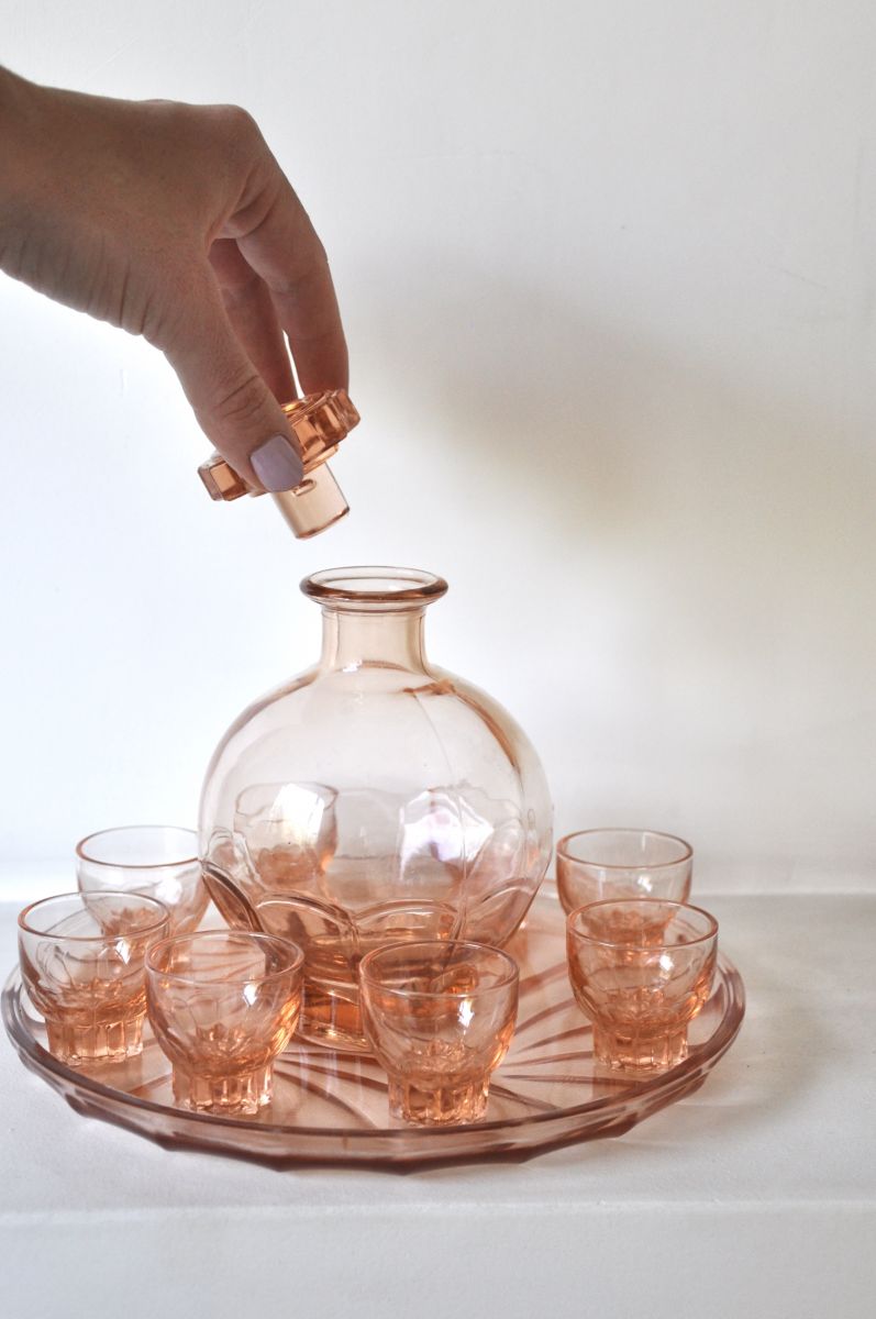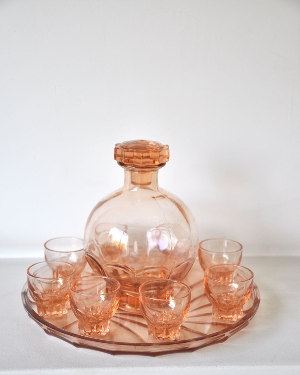Descriptif : plateau + carafe + 8 verres à liqueur