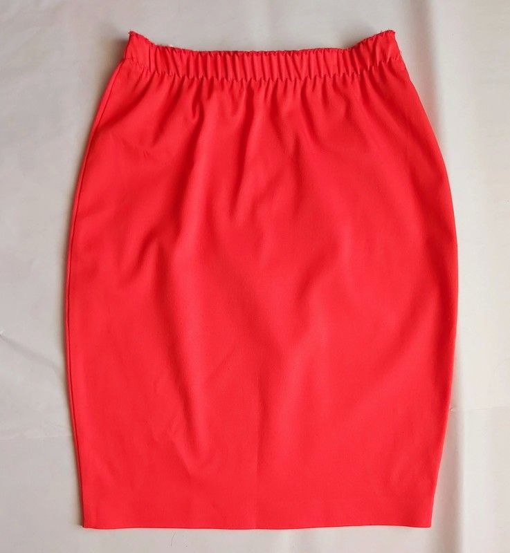 Vintage années 1990s jupe crayon stretch orange fluo, taille haute élastique, non doublée. Pas d'étiquette taille ou compo