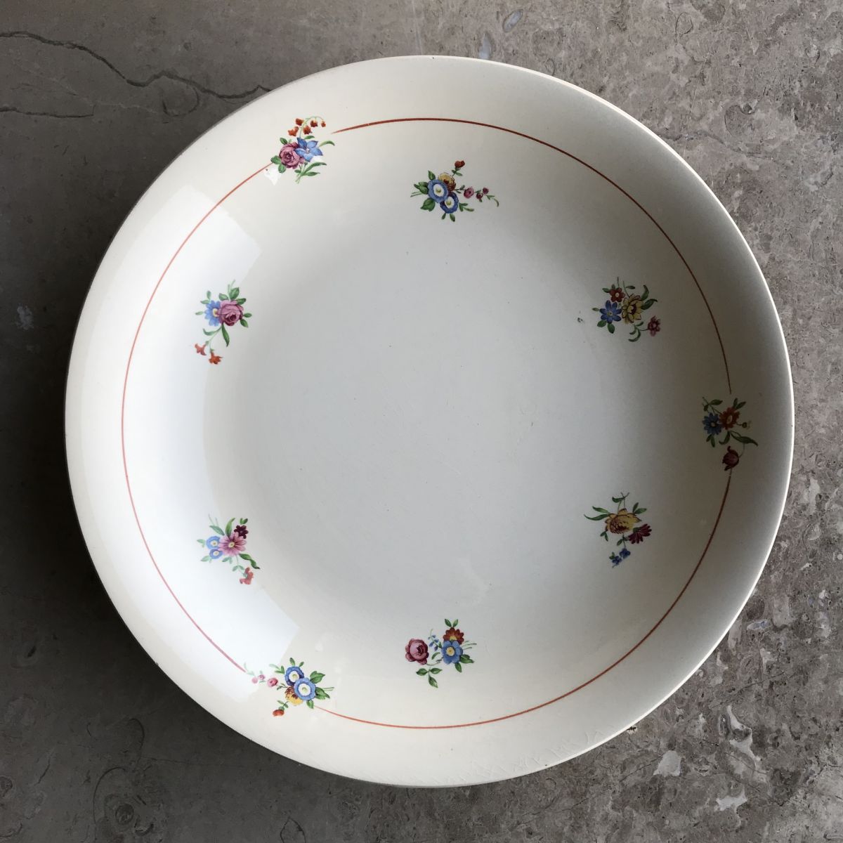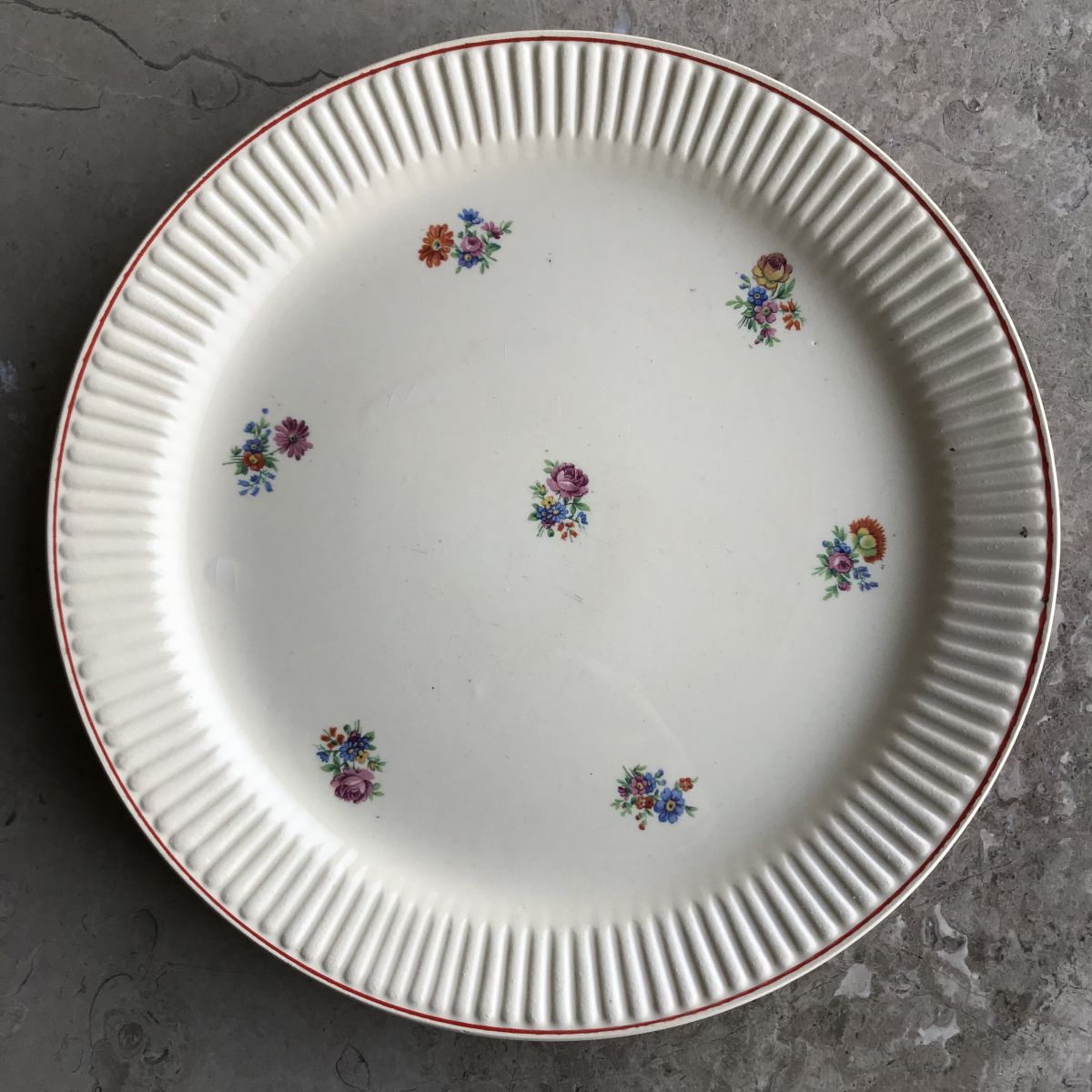 Motif et couleur : lacet rouge – petits bouquets de fleurs – travail dans la pâte de porcelaine.