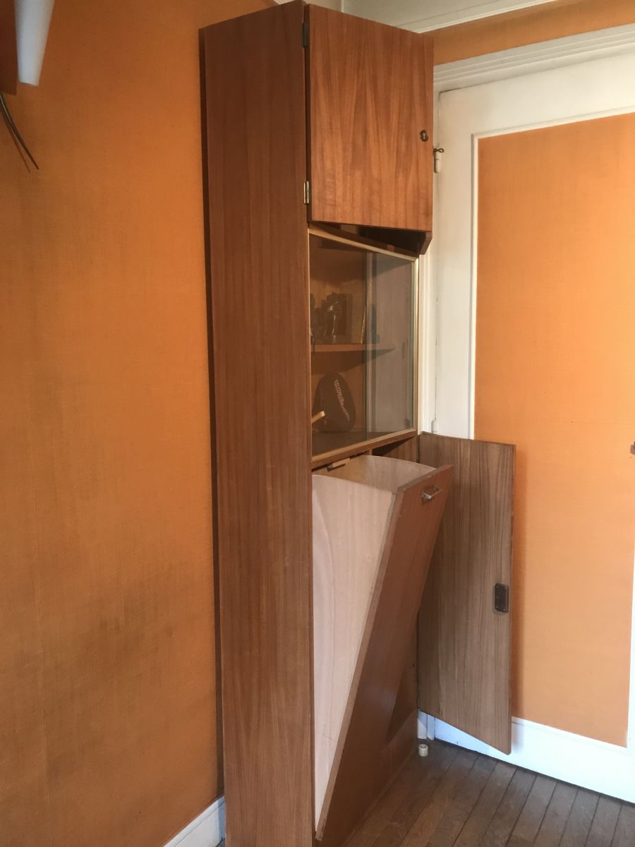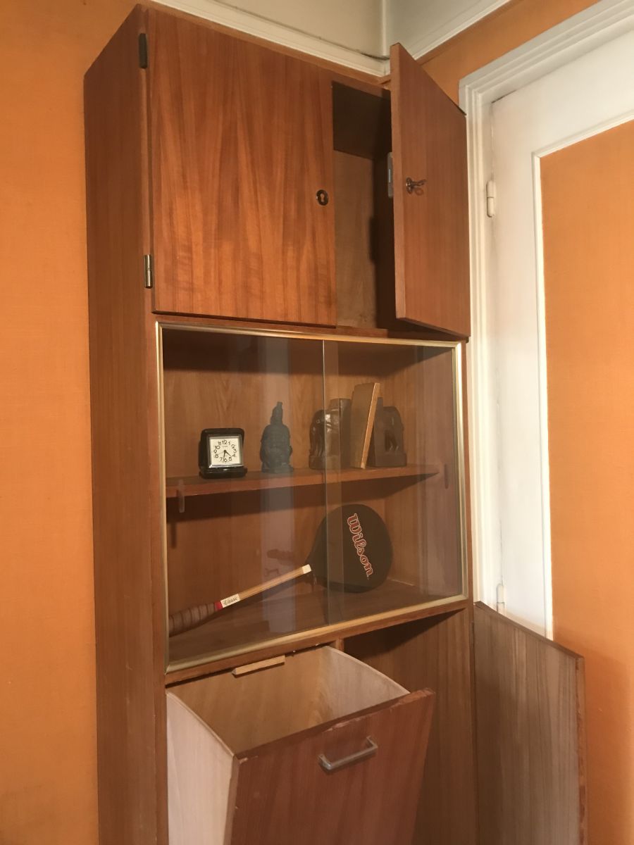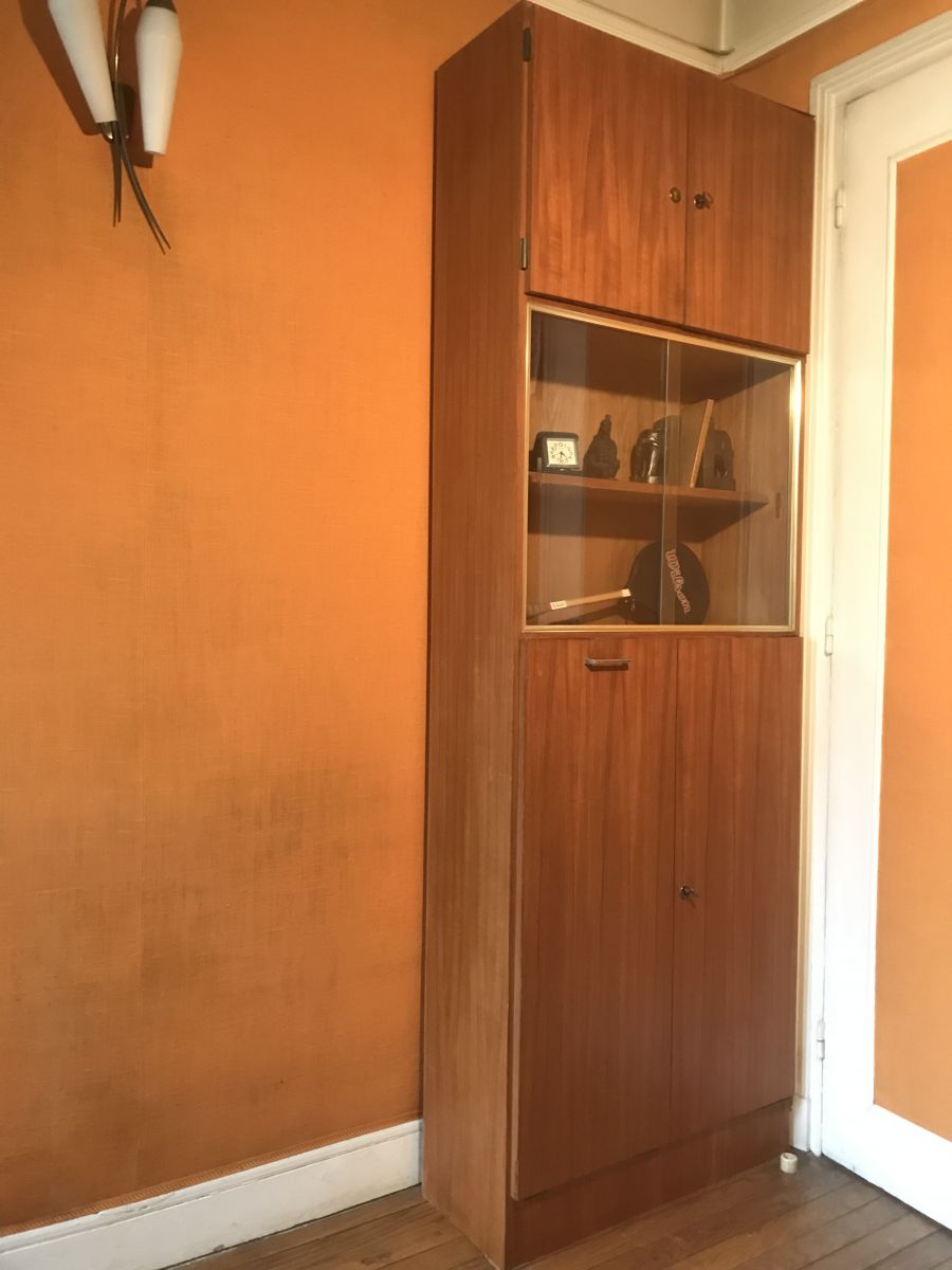 Seul signe d'usure : les chants (1 cm) en lamelle de bois collé sur la tranche des portes se détachent et doivent être recollés ou remplacés.