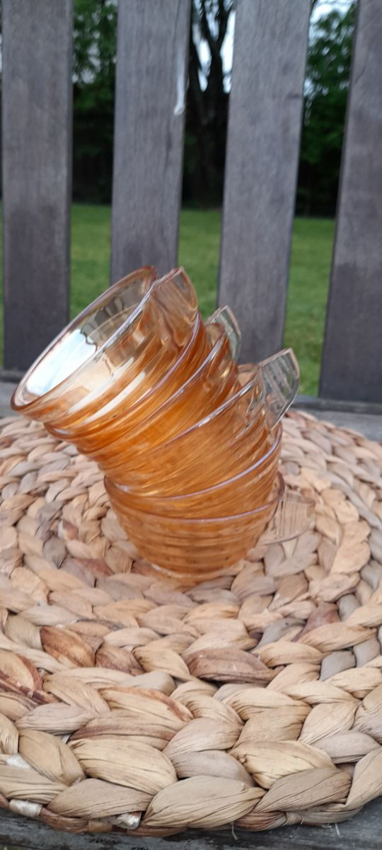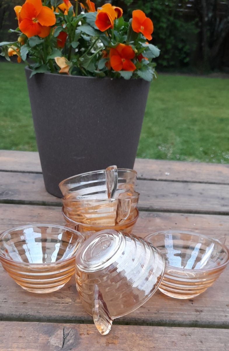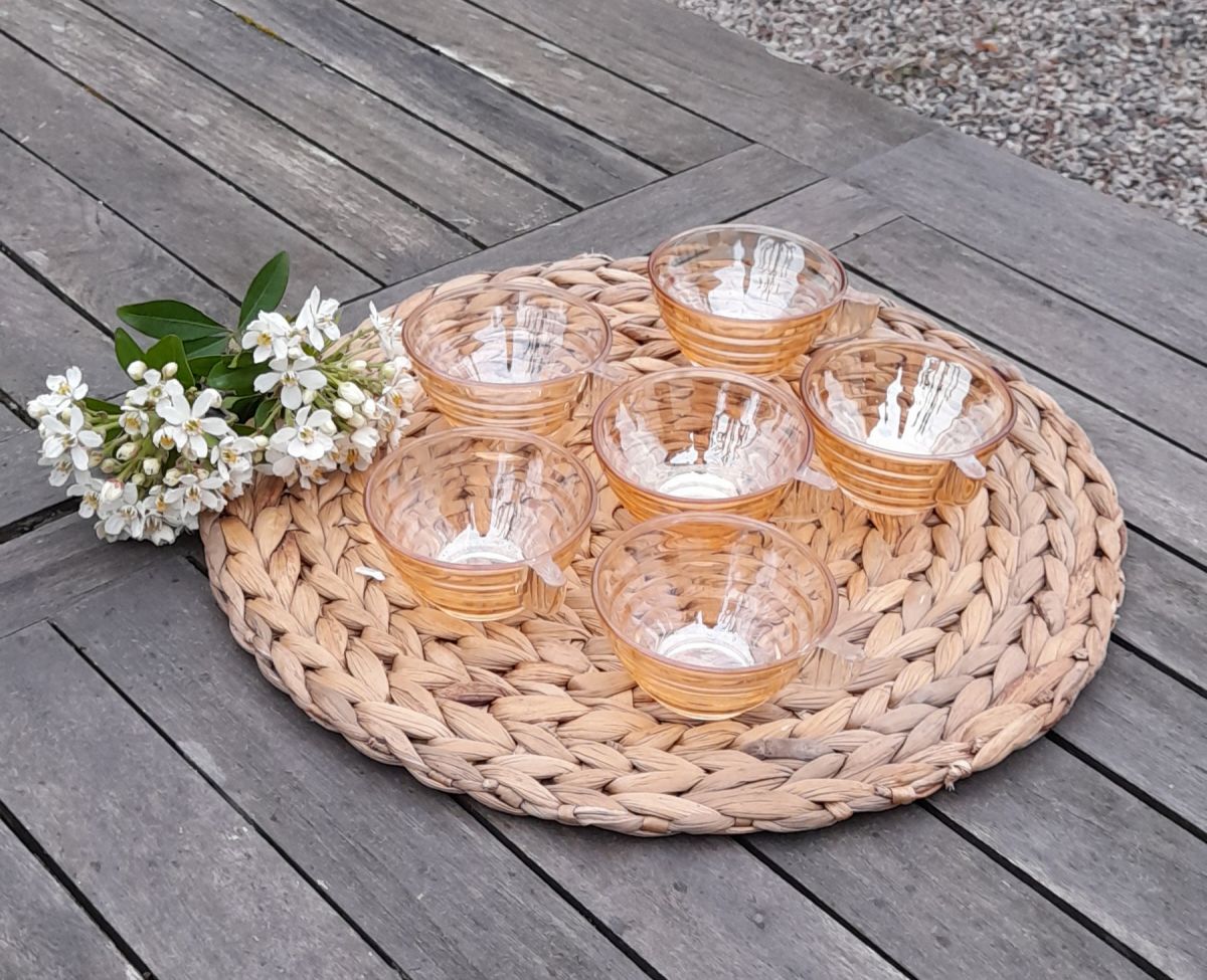 Ces 4 tasses abricot clair irisées de marque Gondolo d'un style Art Déco et datant des années 58/60.
