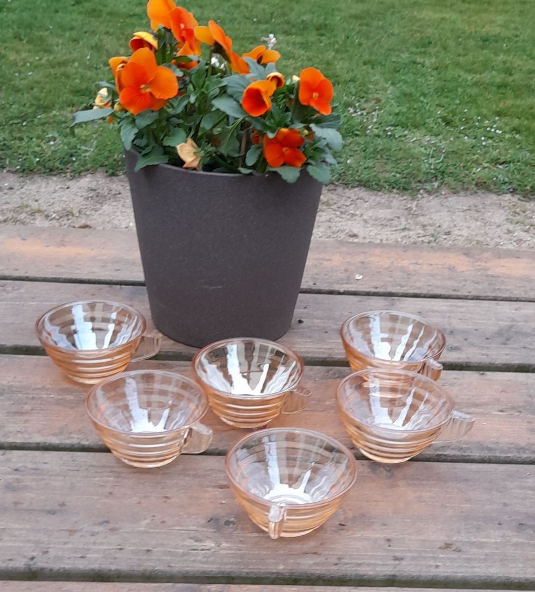 6 tasses café, art déco, abricot clair irisées, gondolo