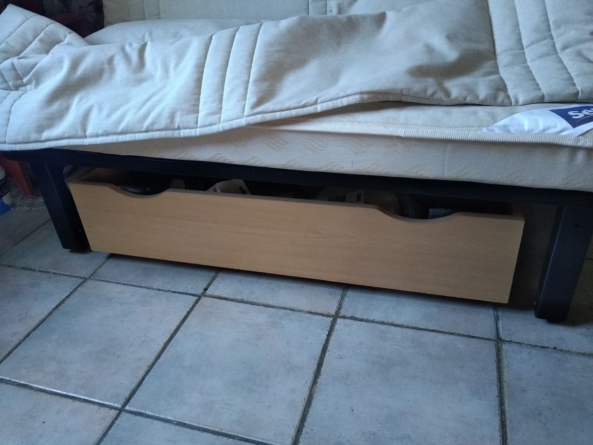 Canapé lit 2 places , couleur beige avec un tiroir de rangem