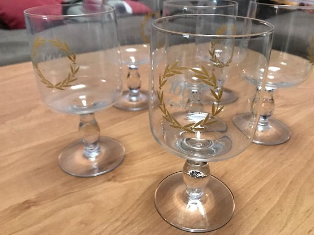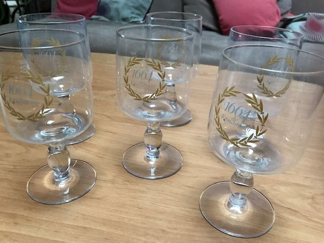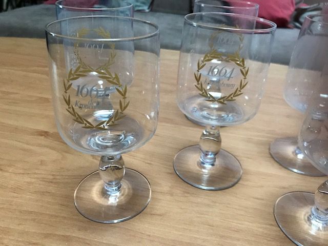 Lot 6 verres à bière " 1664 de Kronenbourg " 25 cl , décor lauriers or.