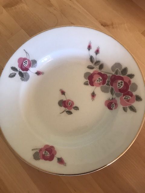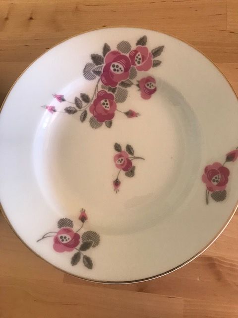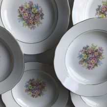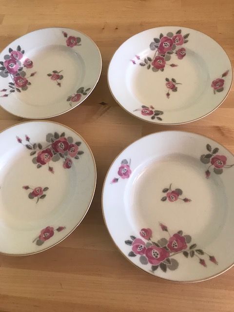 Quatre assiettes en porcelaine vintage décor fleurs modernes (je ne connais pas le fabricant)