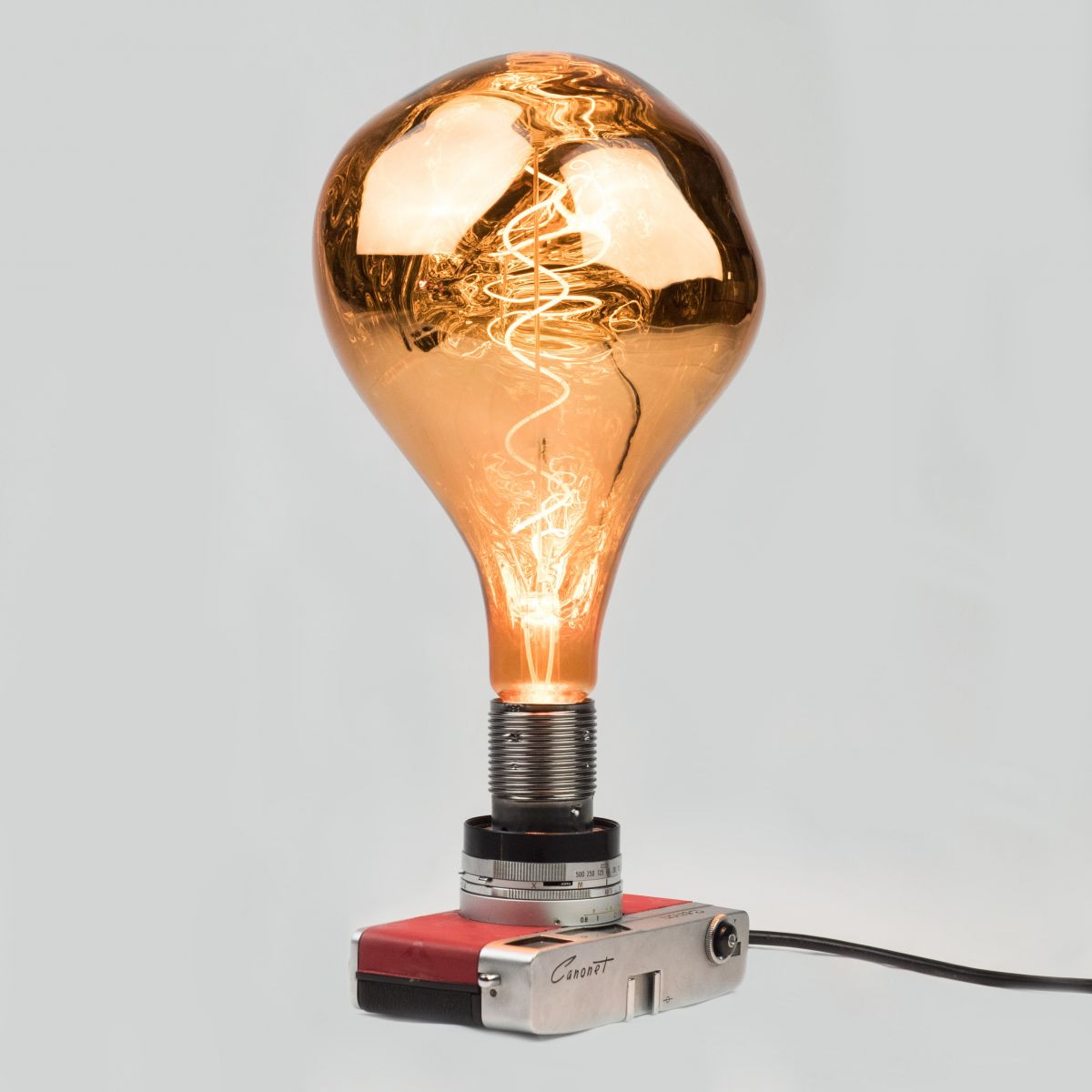Composé d'une ampoule Led basse consommation, un appareil en acier Canon et d'un câble d'alimentation, cette lampe trouve idéalement sa place sur une table ou table de chevet.