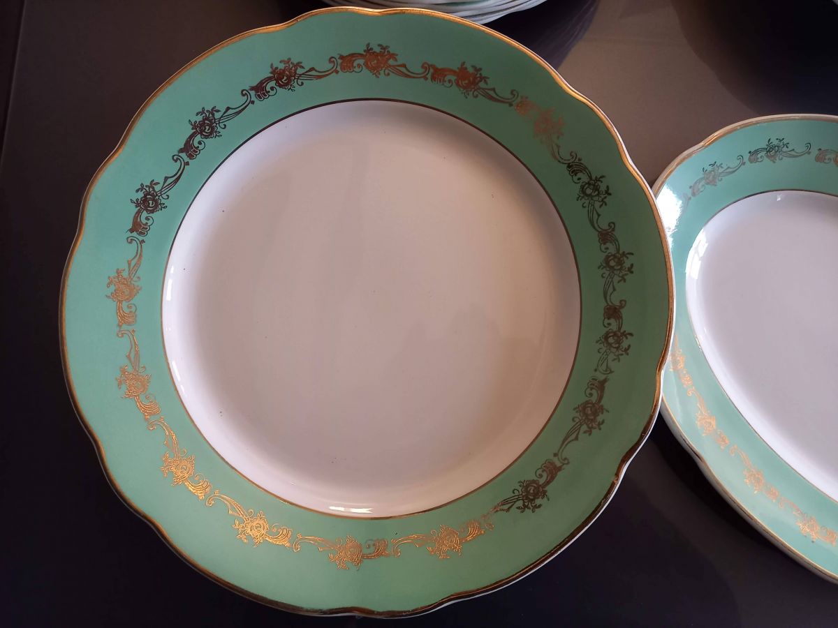 22 assiettes diam. 23,6 (dont 13 avec décor or comme neuf et 9 avec décor or usagé)
