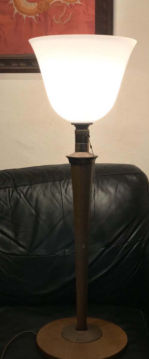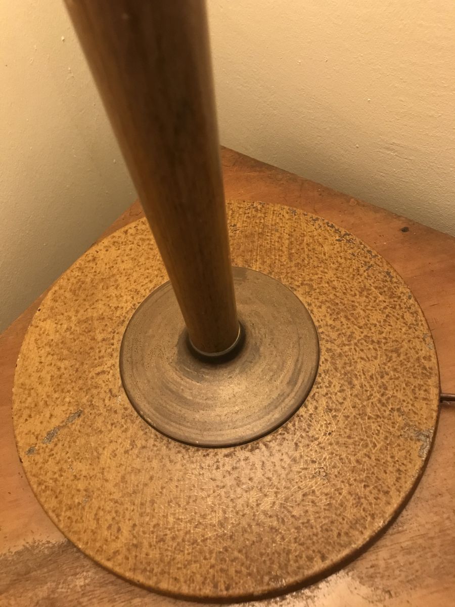 État : bon état, tous les éléments de cette lampe sont entièrement d'origine, sans aucune réfection. Quelques rayures d'usage , normales pour l'âge de cet objet non rectifiées volontairement pour le garder dans son jus (voir photos fut et socle).