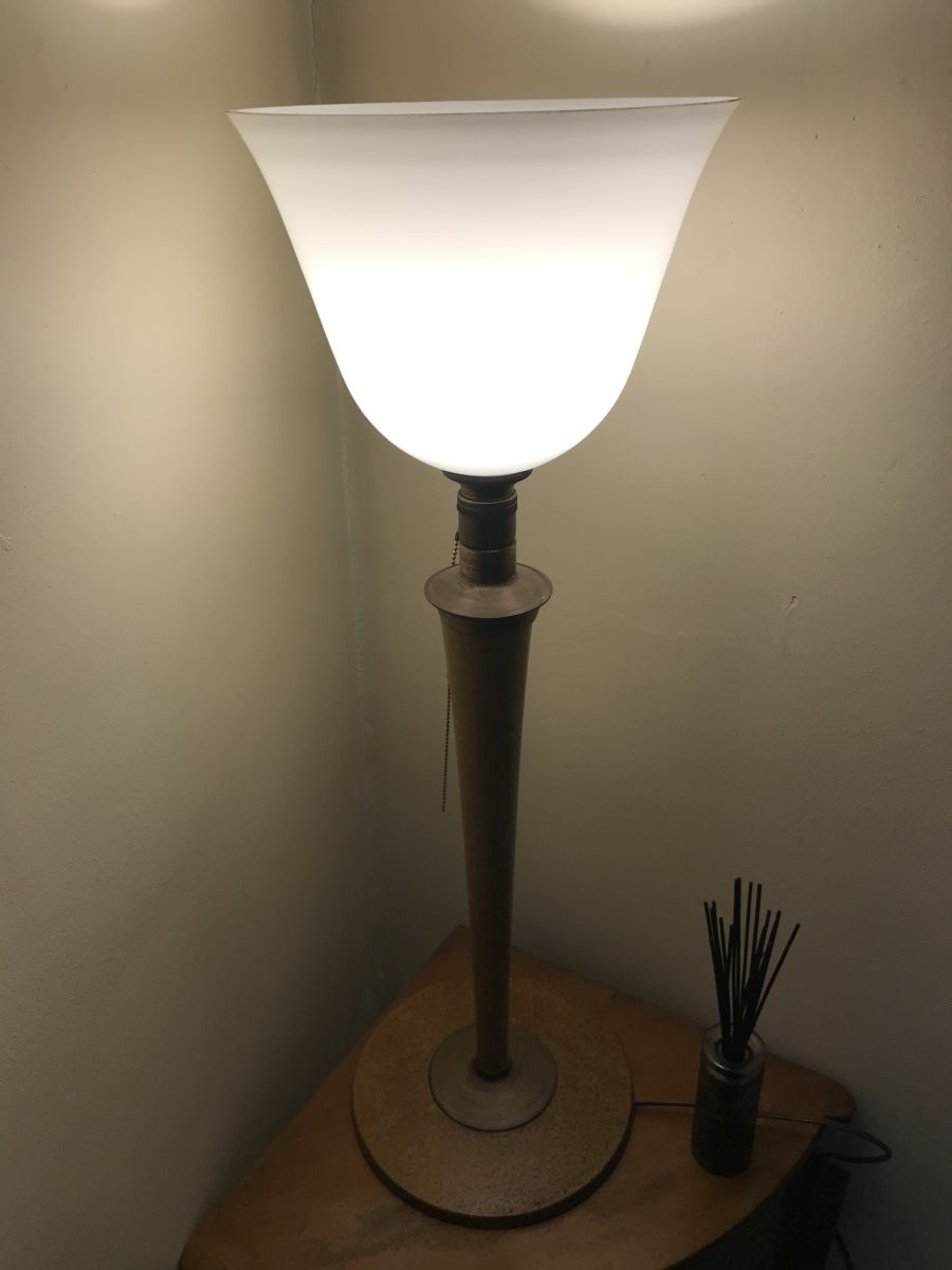 Réflecteur/diffuseur : une opaline blanche de type "tulipe" d'origine, sans aucun défaut ni éclat.