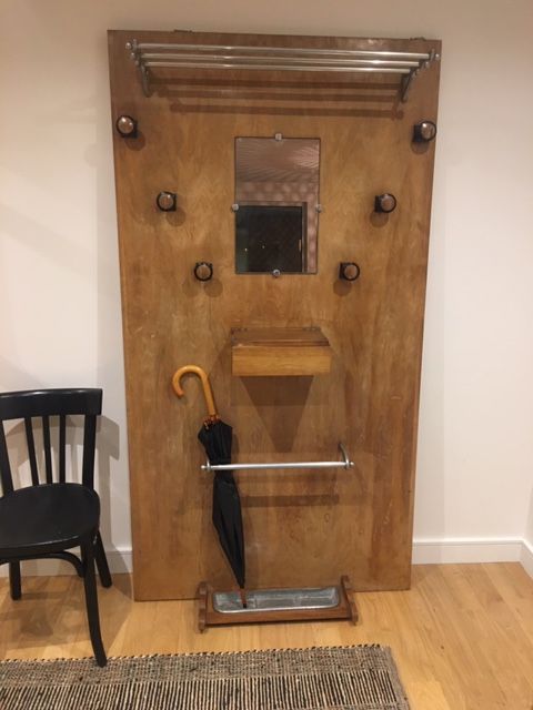 ✨coup de cœur ✨pour ce vestiaire/ porte manteau des années 50. 6 patères, étagère en métal, porte parapluie avec son bac en zinc amovible pour récupérer l eau (ingénieux ????), vide poche, miroir. Se fixe au mur par deux vis. Une pièce unique en très bel état qui donnera du cachet à une entrée et se dévoilera très pratique.