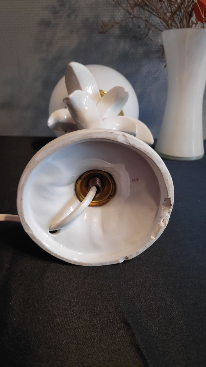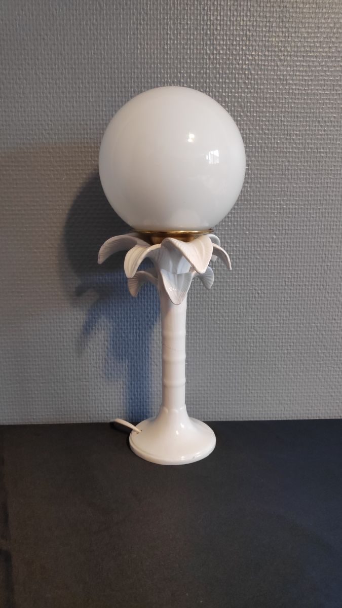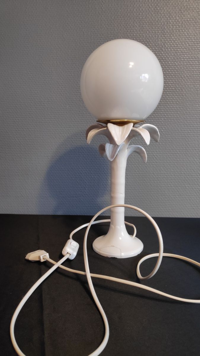 lampe palmier en céramique blanche italienne et globe opaline des années 80
