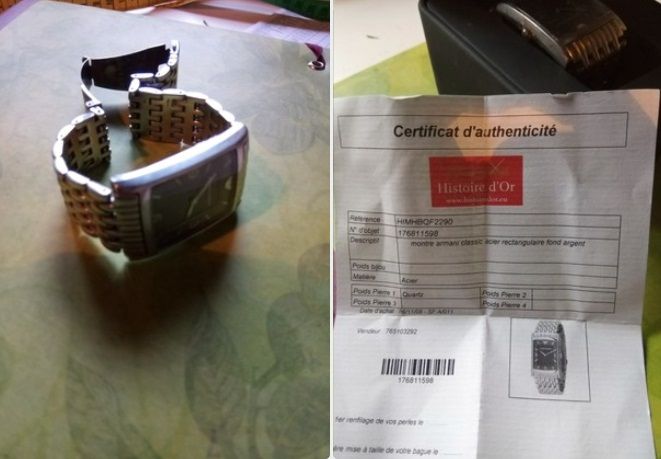 Certificat d’authenticité - réf AR0145 bracelet acier