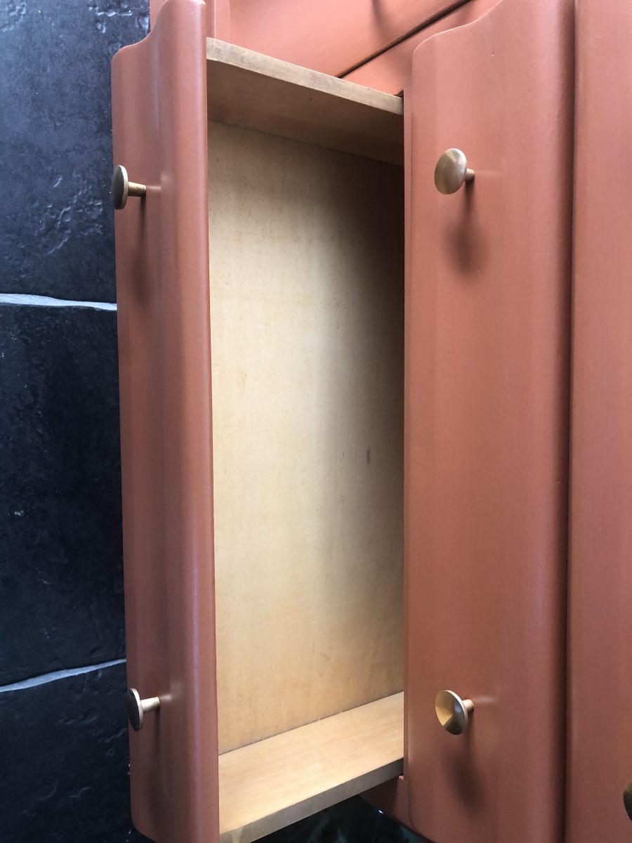 Commode vintage pieds moustache, couleur Terracotta, en très bon état.