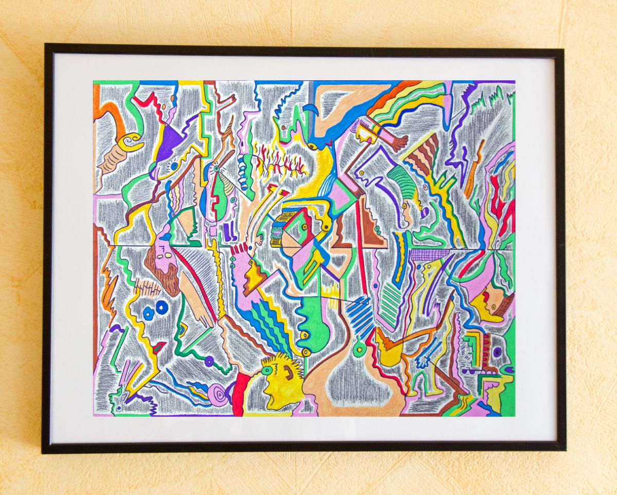 Décoration murale art singulier. Dessin pièce unique outsider art, figuration libre.