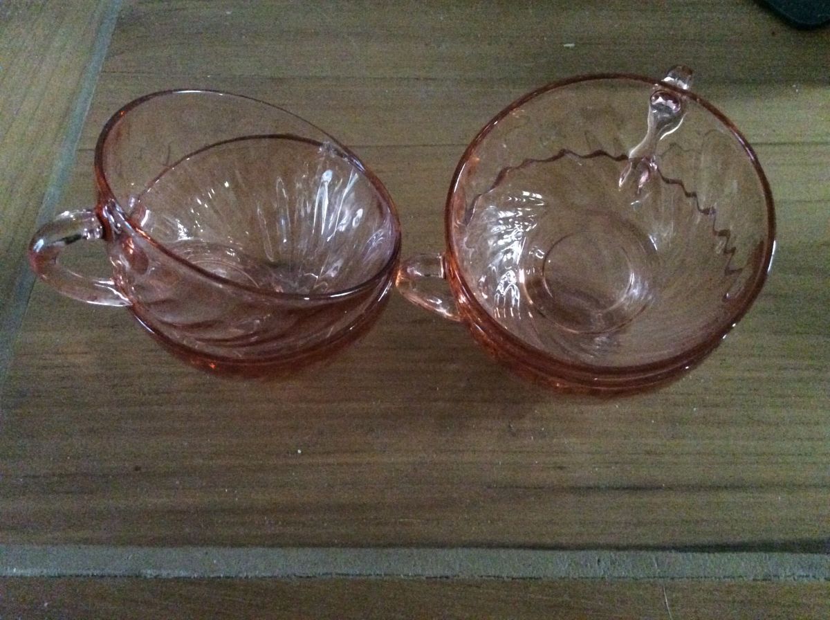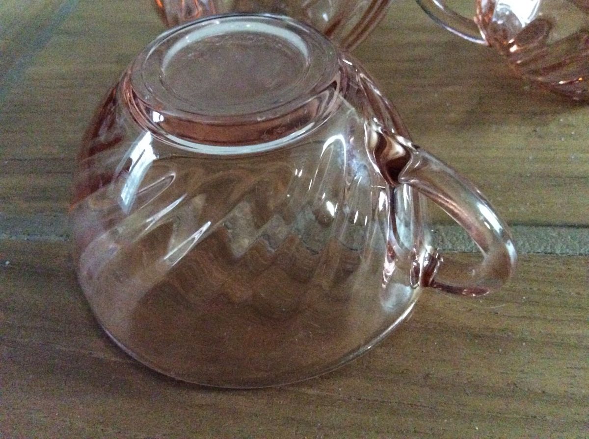 4 tasses à café rosaline Arcopal, verre rose pâle, en très bon état.