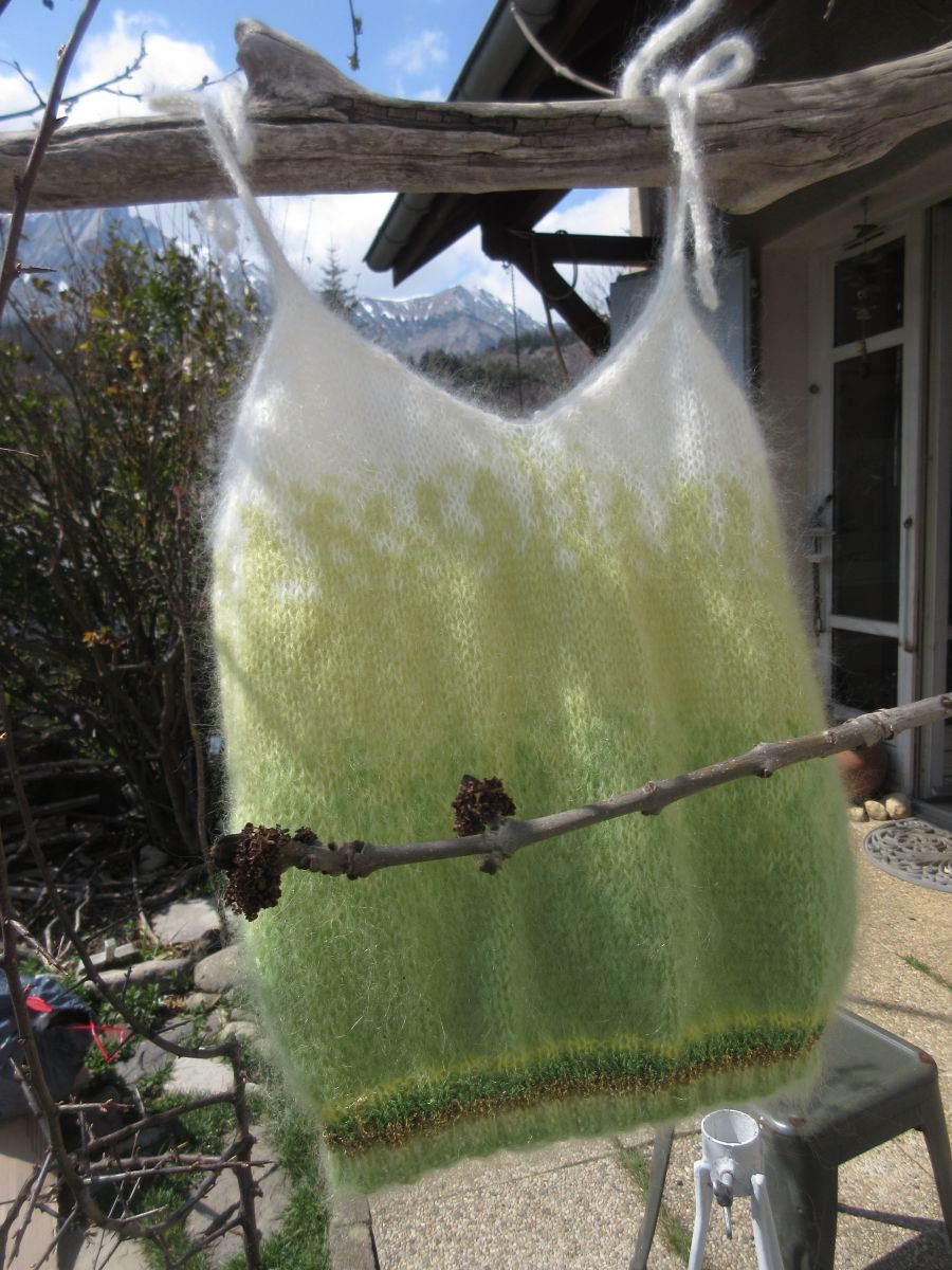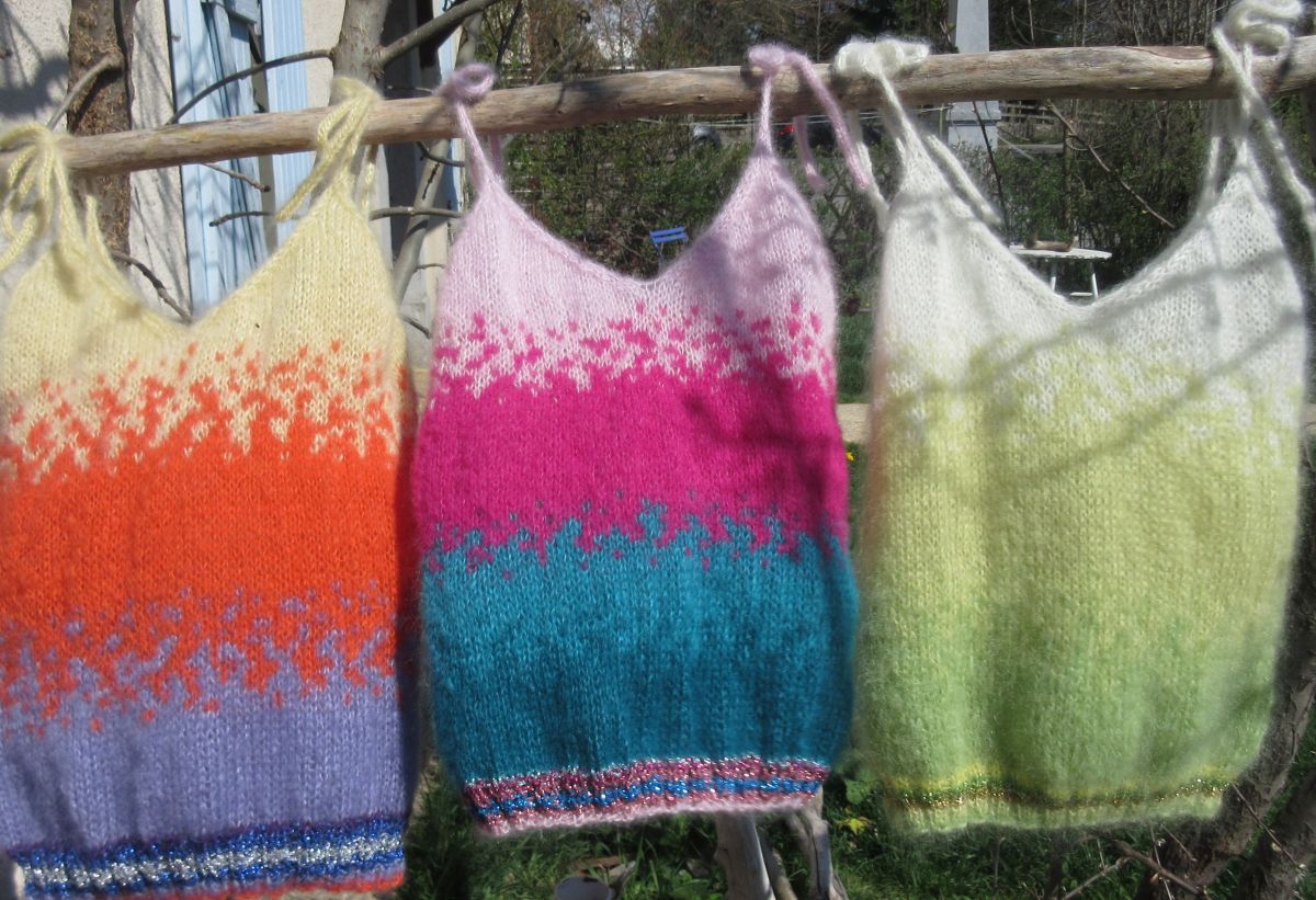 bonsoir, oui le top vert est dispo. La Mohair et soie est souple, légère et très douce, il fait 38/39 cms en largeur et 34 cms de la pointe du V , 45 cms du haut vers le lurex. Ensuite, les bretelles ce règles. Perso. je fait un 36/38 et il me va très bien. Cordialement