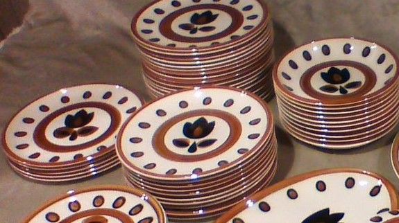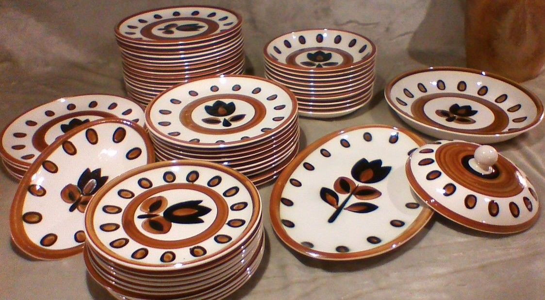 3 plats, présentant des petits éclats sur la base et sur quelques assiettes.