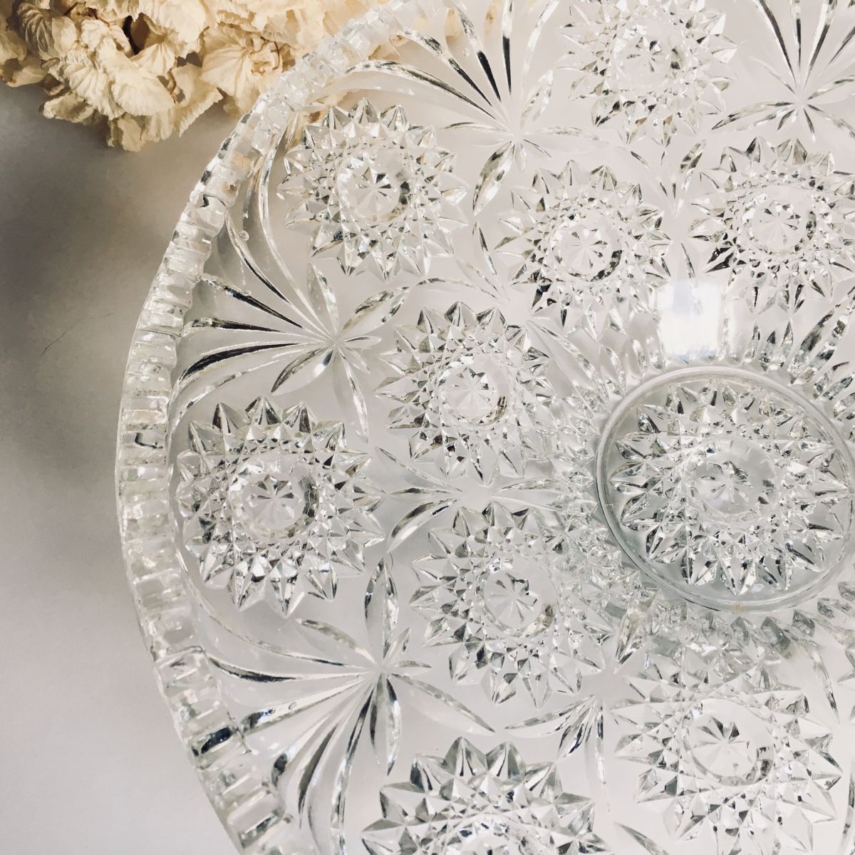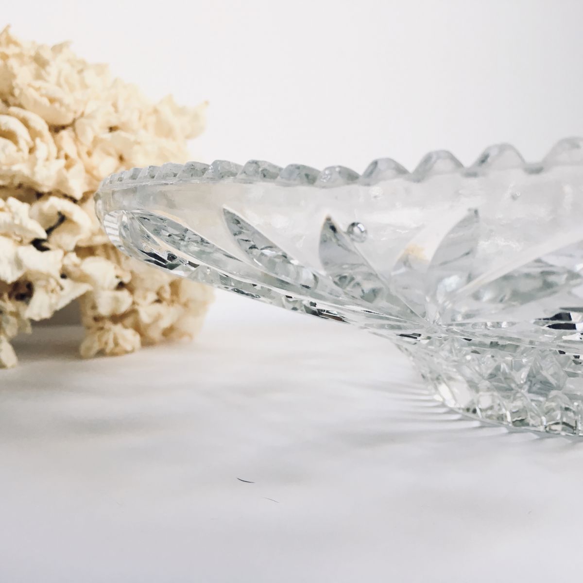 ♻️Très belle coupe à fruits au verre épais texturé avec de jolis motifs ciselés. De forme ronde et creuse, l’intérieur est lisse, l’extérieur est travaillé en reliefs et les bords sont crénelés ♻️