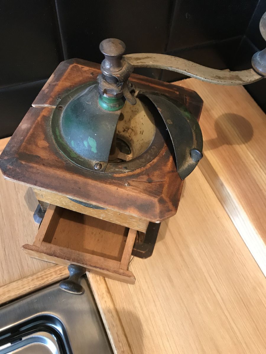 Moulin à café de marque " PEUGEOT " qui peut être utilisé comme objet déco en l'état si vous appréciez son côté patiné et marqué par l'utilisation et le temps qui a marqué sa trace (vernis usé et bois qui est fendu sur le dessus, voir photos)