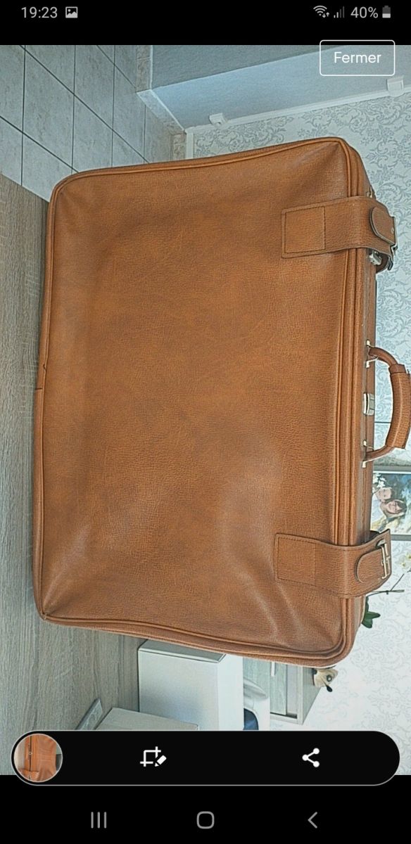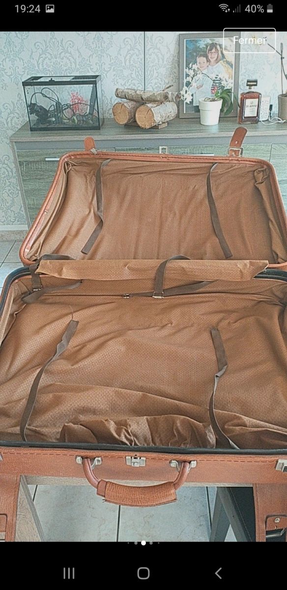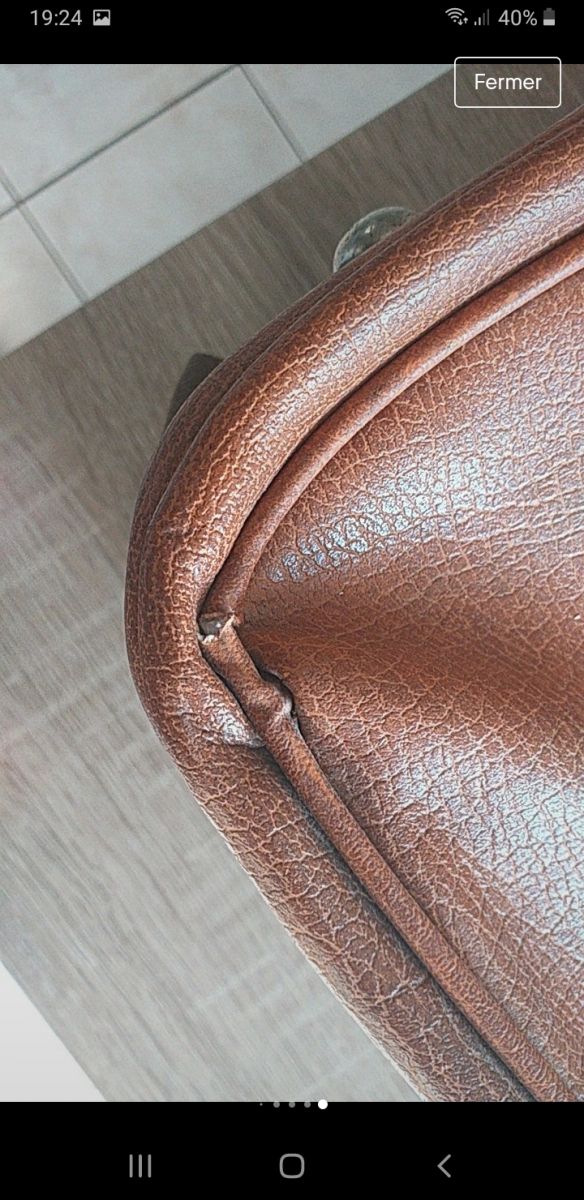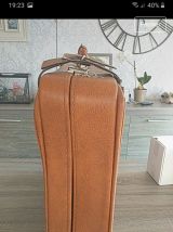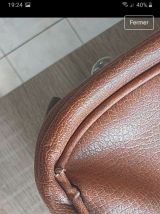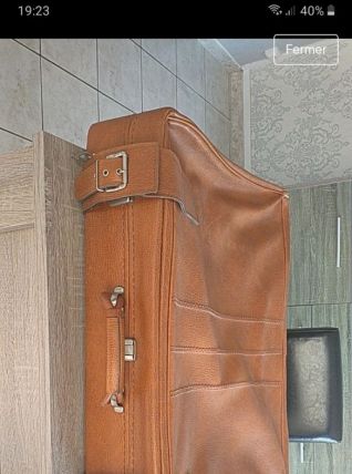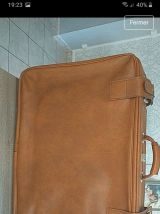 Vends valise en cuir marron avec les clefs. Elle est en bon état hormis un tissus qui se décolle (dernière photo) et 2 coins en bas (avant-dernière photo).