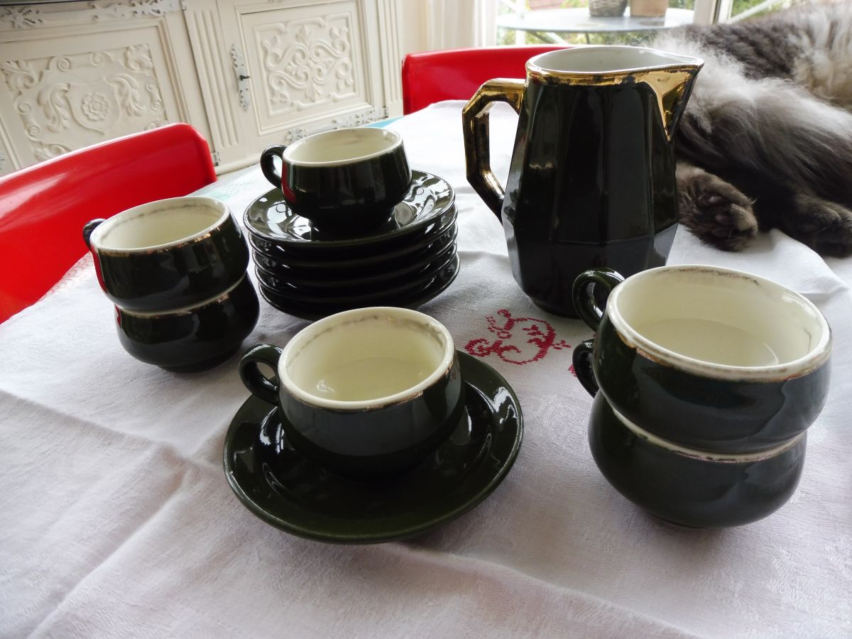 Bonsoir Jean Christophe, je vous remercie pour votre réponse et je vais donc créer une nouvelle annonce que vous trouverez dans ma vitrine . Elle comprendra donc le service d'assiettes ainsi que le service à café. En ce qui concerne le moulin à café je recherche dans mes caisses de brocante j'en ai un je pense, je vous ferai parvenir des photos dès que je l'ai retrouvé. Pour la cafetière je recherche aussi. Merci à vous. Bien cordialement. Anne Charlotte.