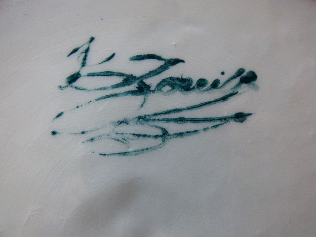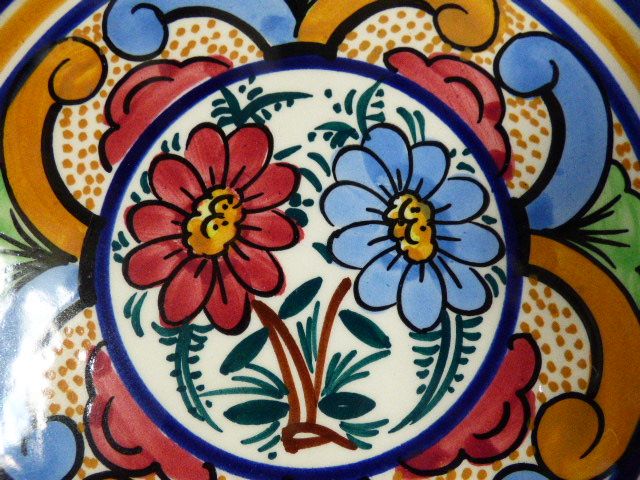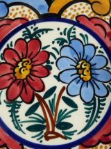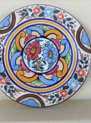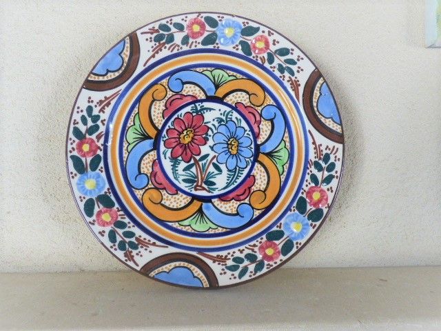 Assiette décorative Faïence, à accrocher et/ou pour service - décor main - pourtour relief - dimension : 25 cm de diamètre