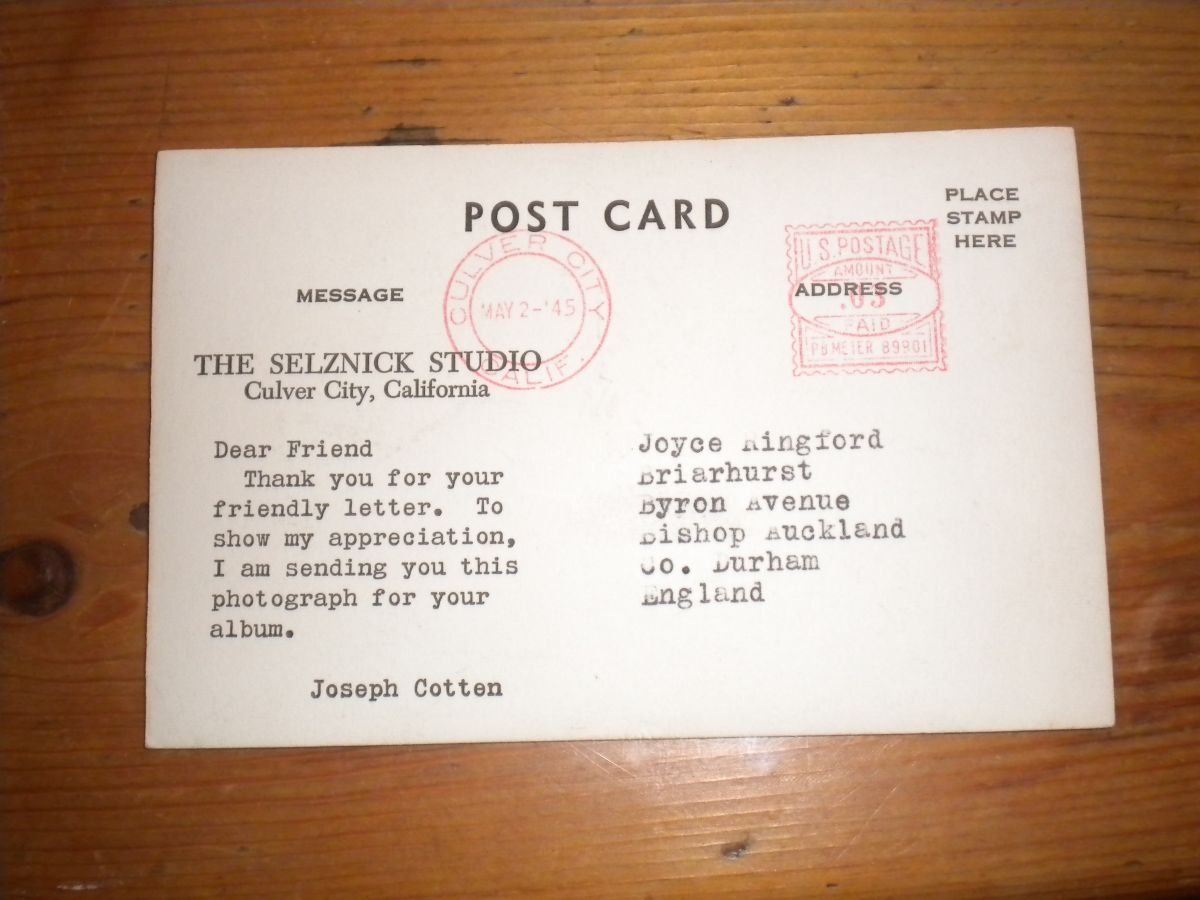 18 cartes/photos vintage avec les stars de Hollywood. C''etait la collection de ma mère quand elle ètait jeune. Des années 40 surtout, quelques signatures imprimés, quelques en encre, sans savoir si cést le 'star' ou le studio cinématographique.