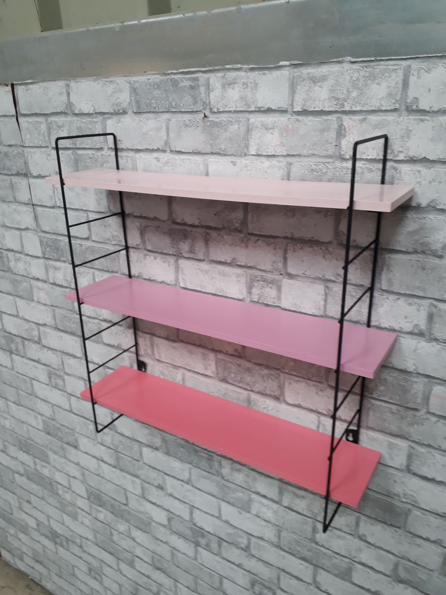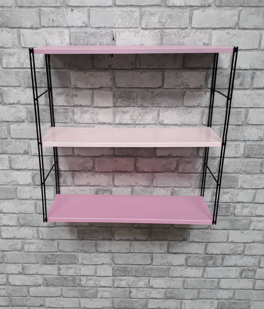 mini etagere 3 tons rose montants noire mat 51x50x13 cm , 80s
