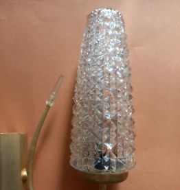 Paire d'appliques tulipes en verre ciselé et métal doré.
