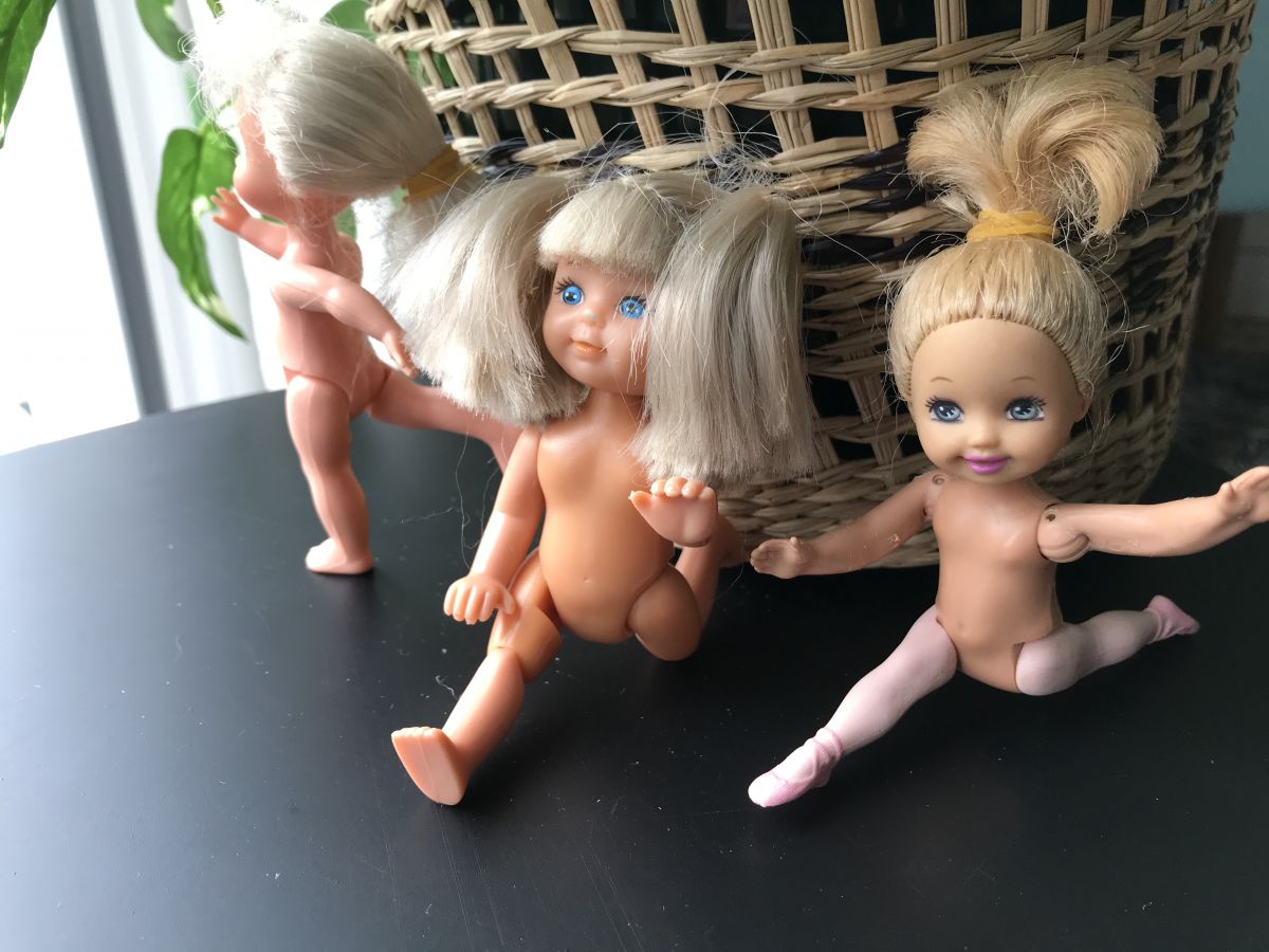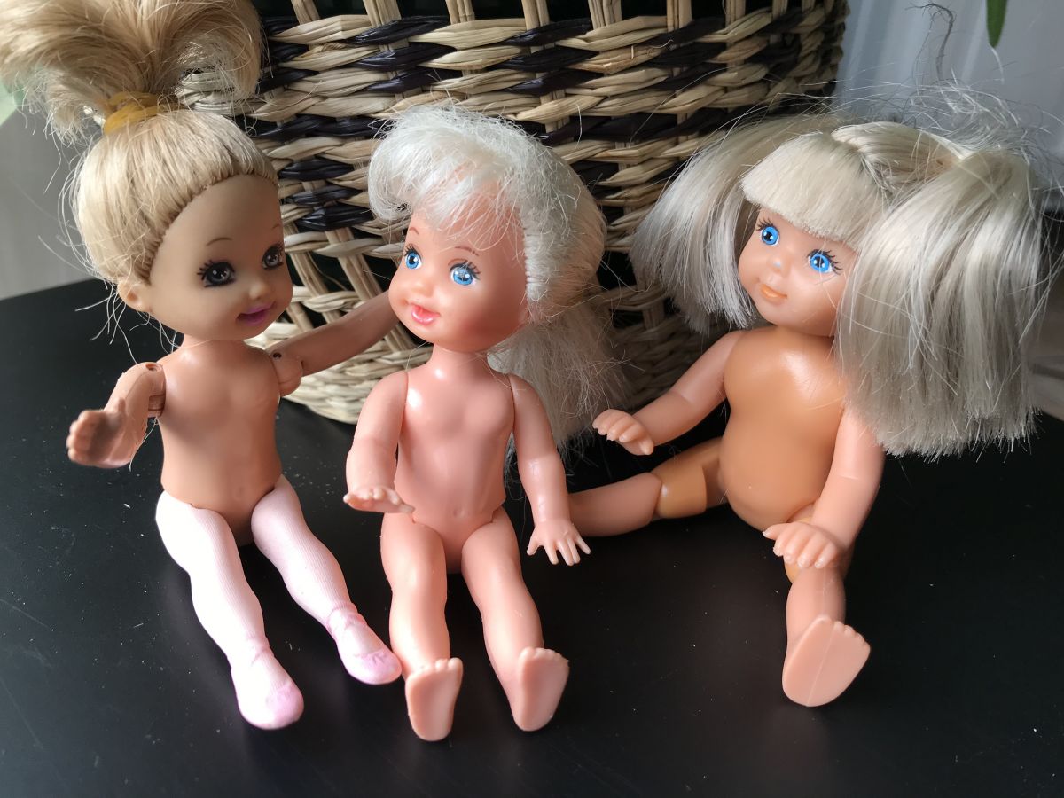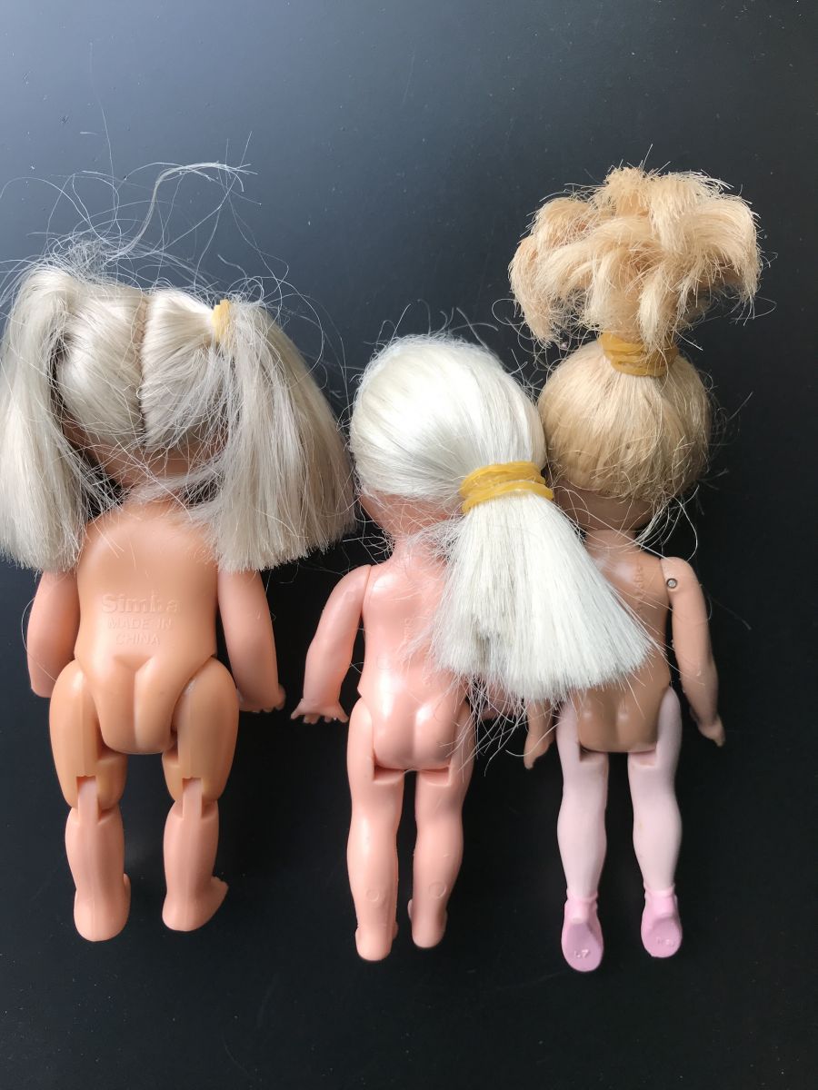 Lot de 3 mini poupées , en partant de la gauche " Pattie" puis " Pauline " et " Perrine , très mignonnes, articulées et qui font de la " gym " ;) qui cherchent une maman d'adoption.