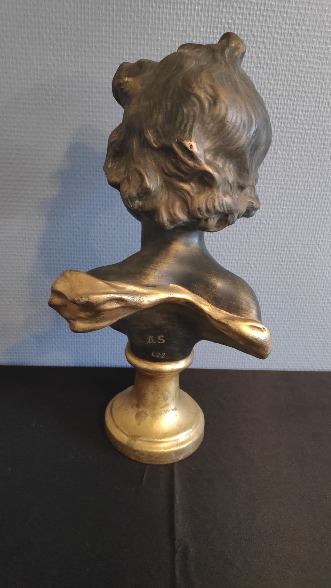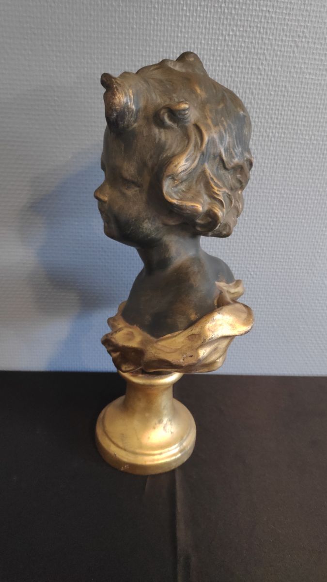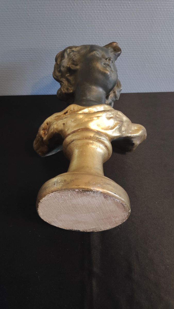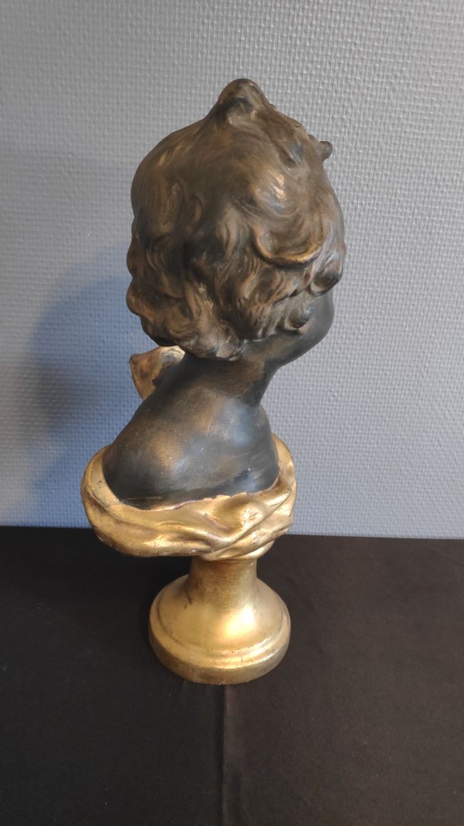 buste chérubin en plâtre noir et doré