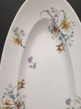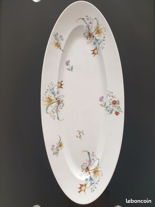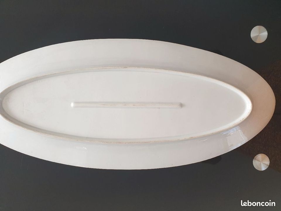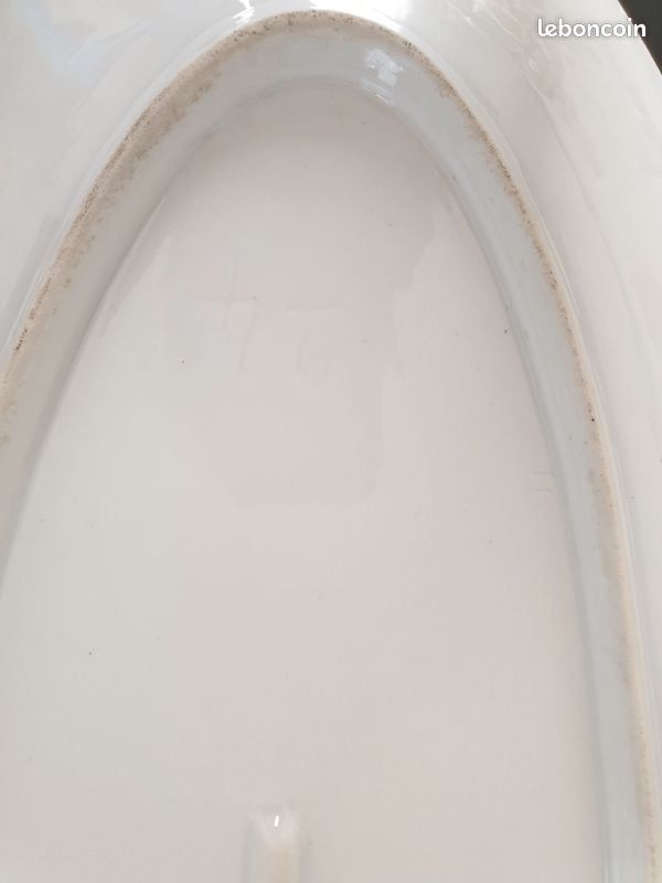 Très grand plat à poisson ancien du 19 ème siècle en porcelaine épaisse de Paris.