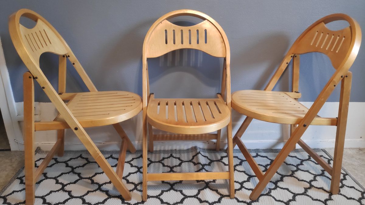 lot de 3 chaises pliantes bois (hêtre) verni estampillées OTK n°23