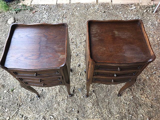 Le dessus de ces petits meubles auraient peut être besoin d'être reteintés