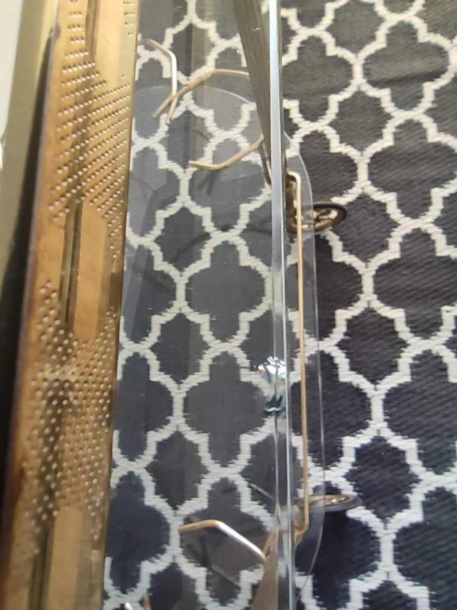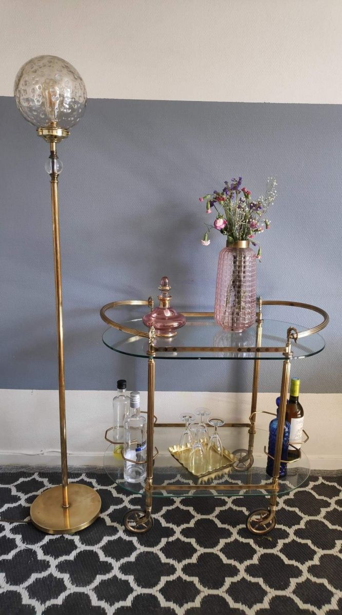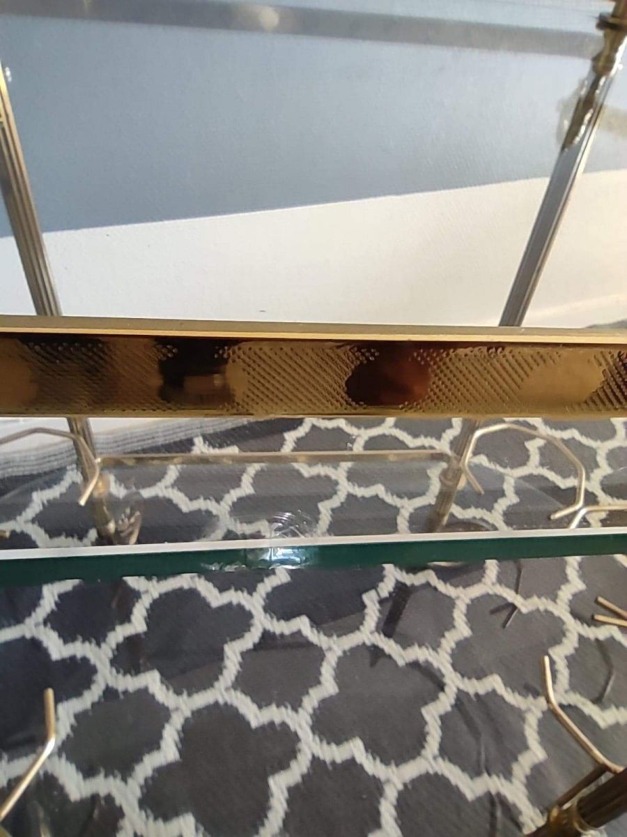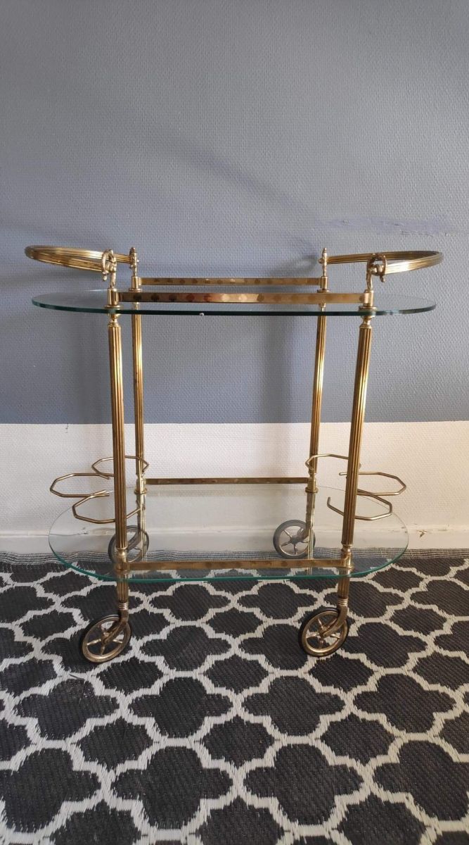 desserte bar 2 plateaux verre et structure en laiton avec 4 roues