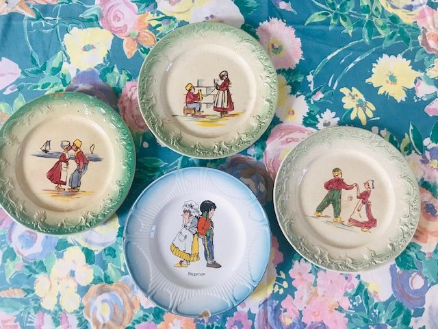 Set de 4 charmantes assiettes vintage du début du 20ème siècle:
