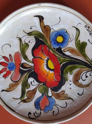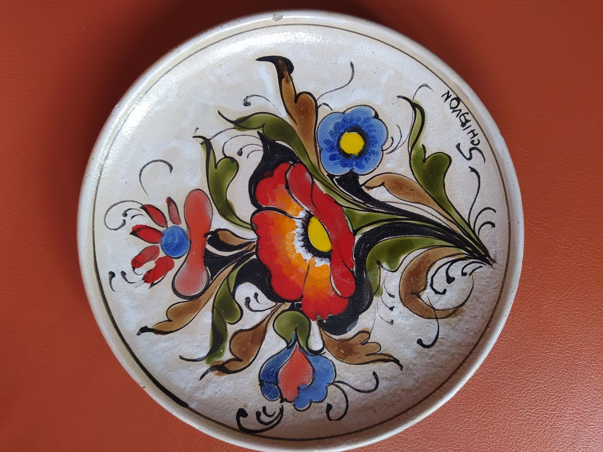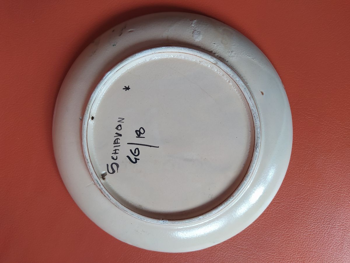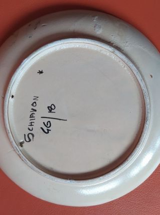 Assiette décorative vintage ELIO SCHIAVON, en céramique d'Italie, peinte à la main, motif floral, numérotée. Un petit éclat.