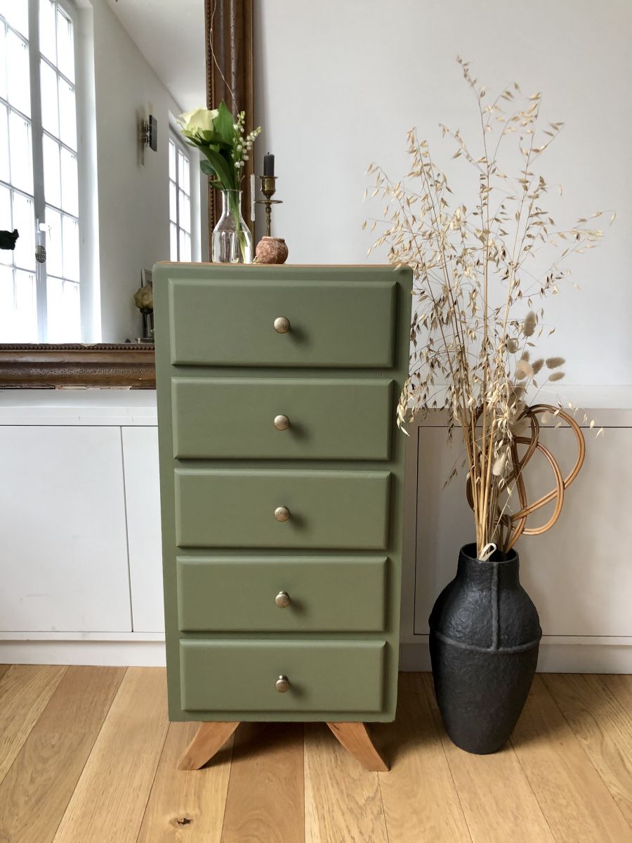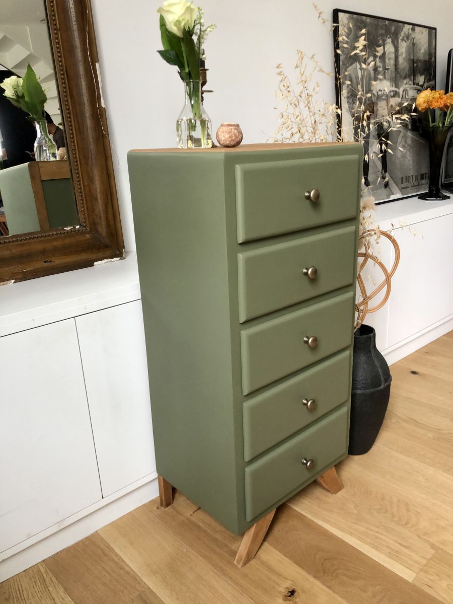 Merci de votre réponse, je cherche dans les tons de gris clair ou de vert céladon. Est-ce possible de savoir les tons que vous proposez et de vous passer commande dès que vous aurez trouvé un nouveau chiffonnier ? Merci beaucoup !