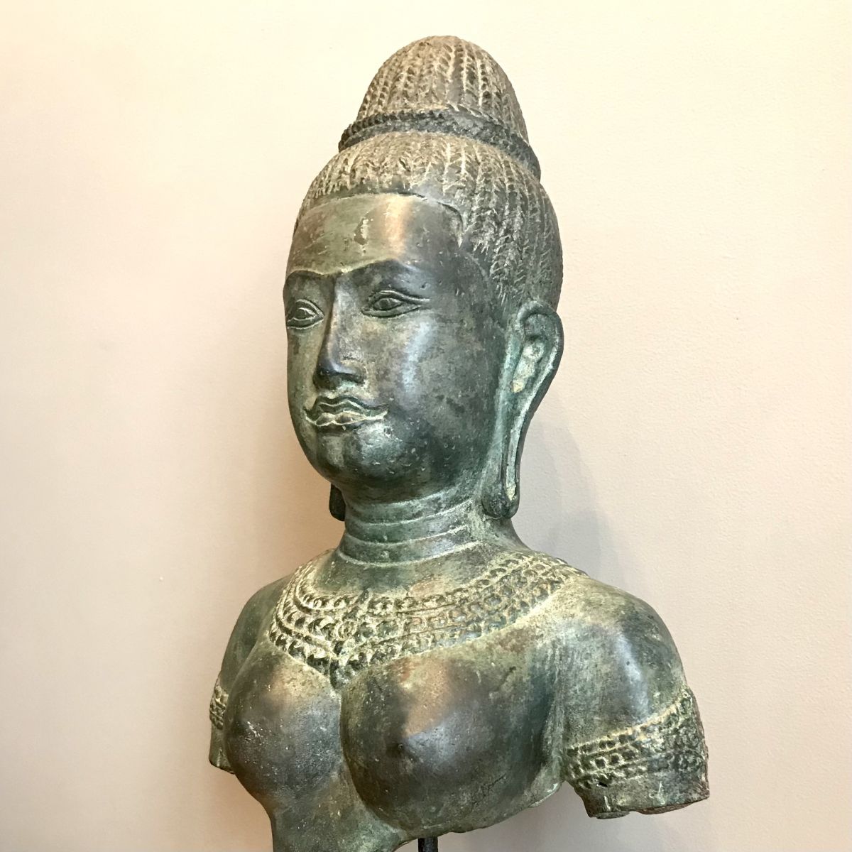 Très joli buste de femme khmer en bronze. Dans le goût de l’antique.