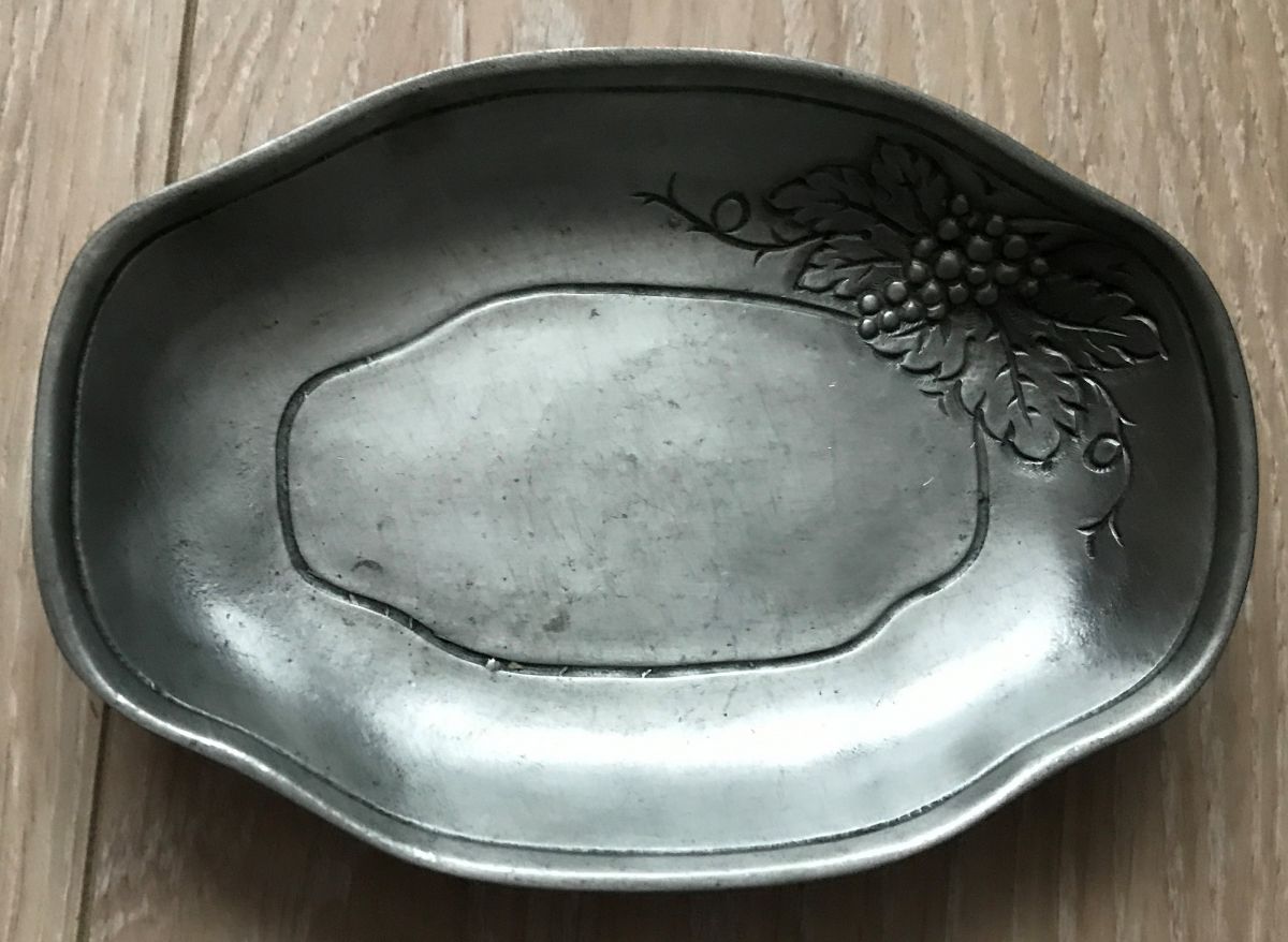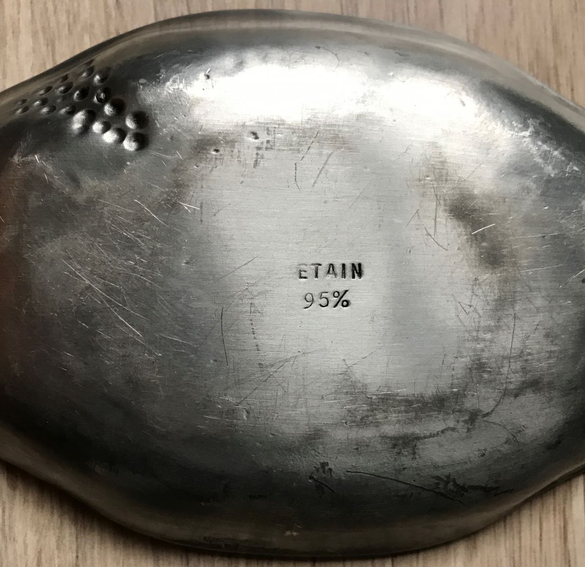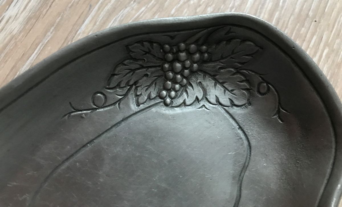 Beau vide poche en étain à décor de grappe de vigne art déco