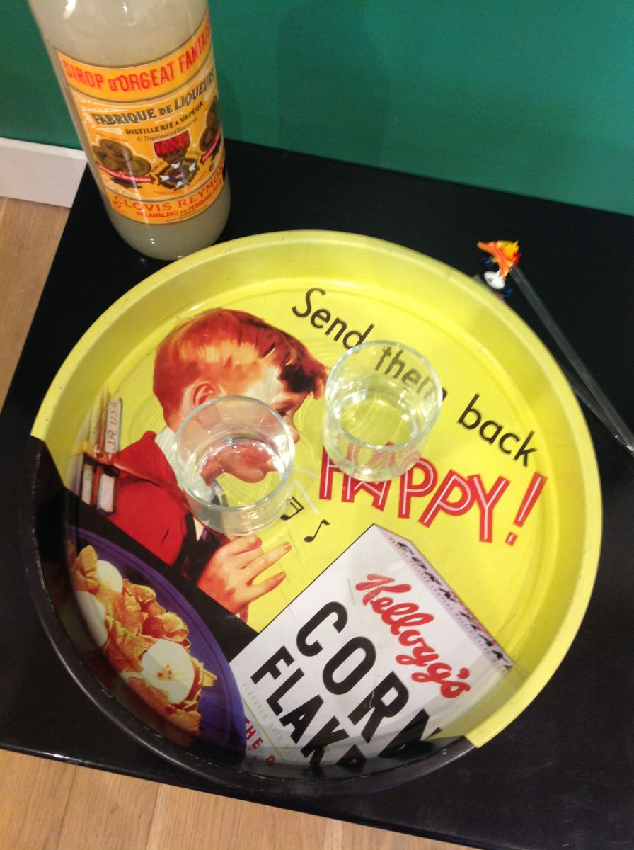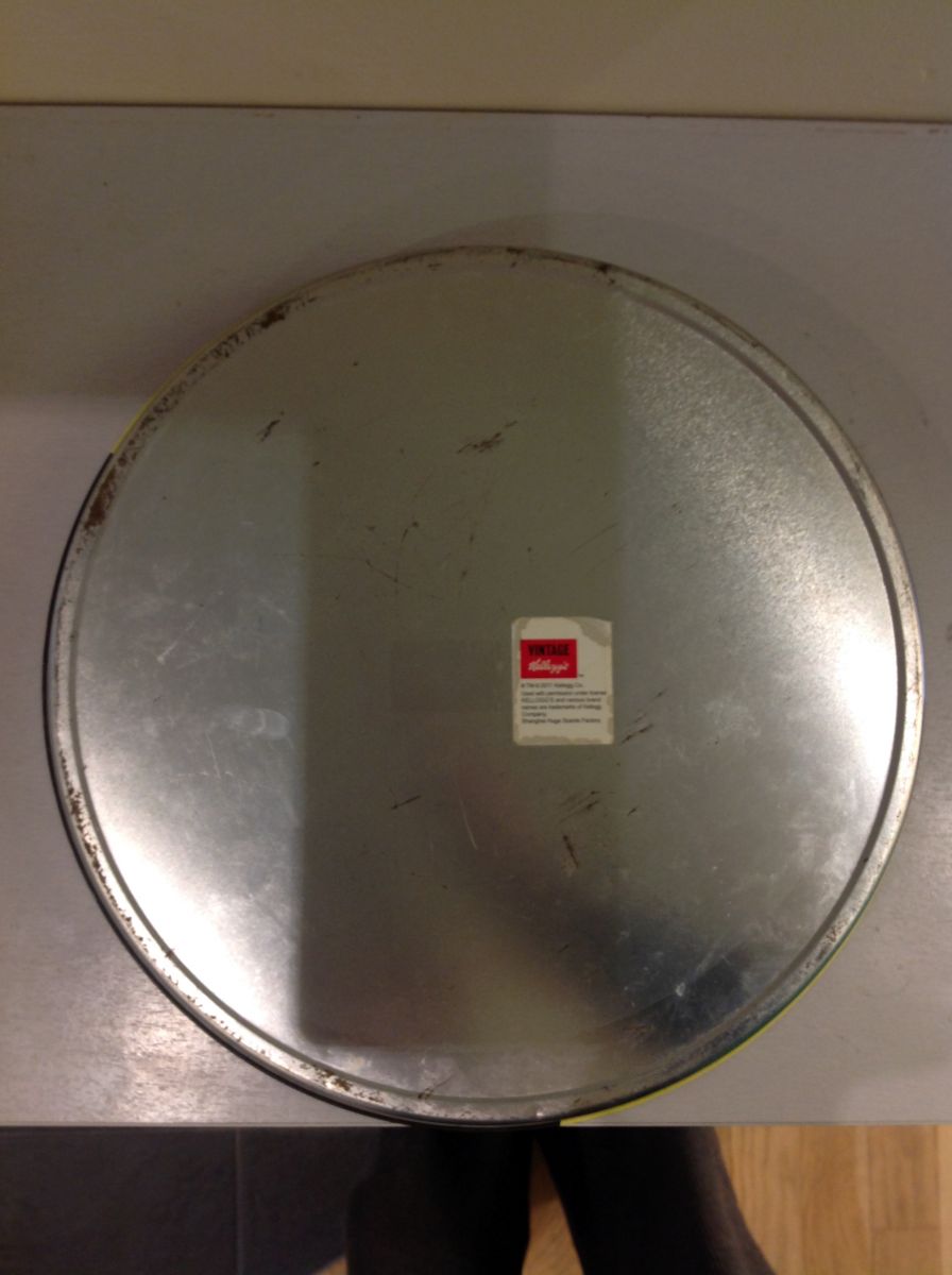 Plateau de type publicitaire, avec des traces d'usage. Diamètre : 32 cm ; hauteur : 4 cm.