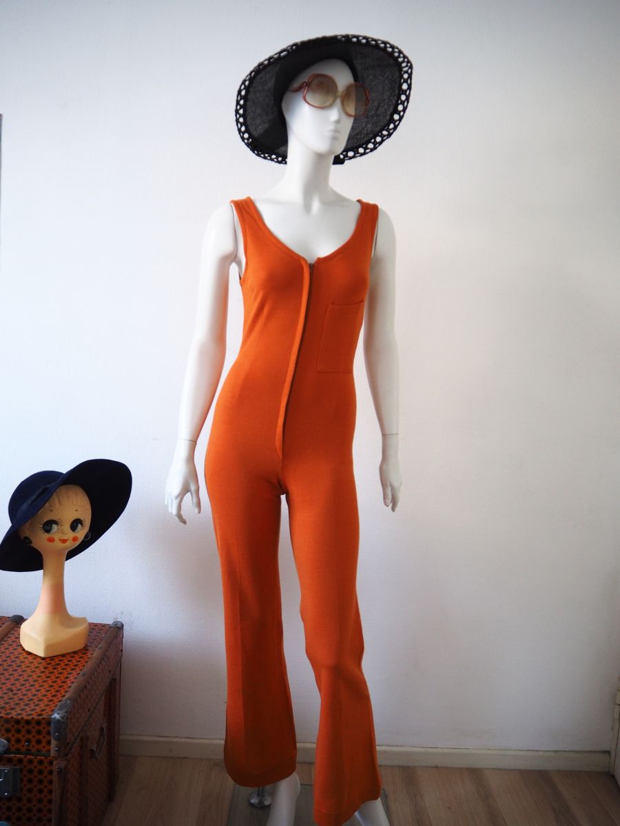 Combinaison pantalon pattes d'éléphant orange funky 70's