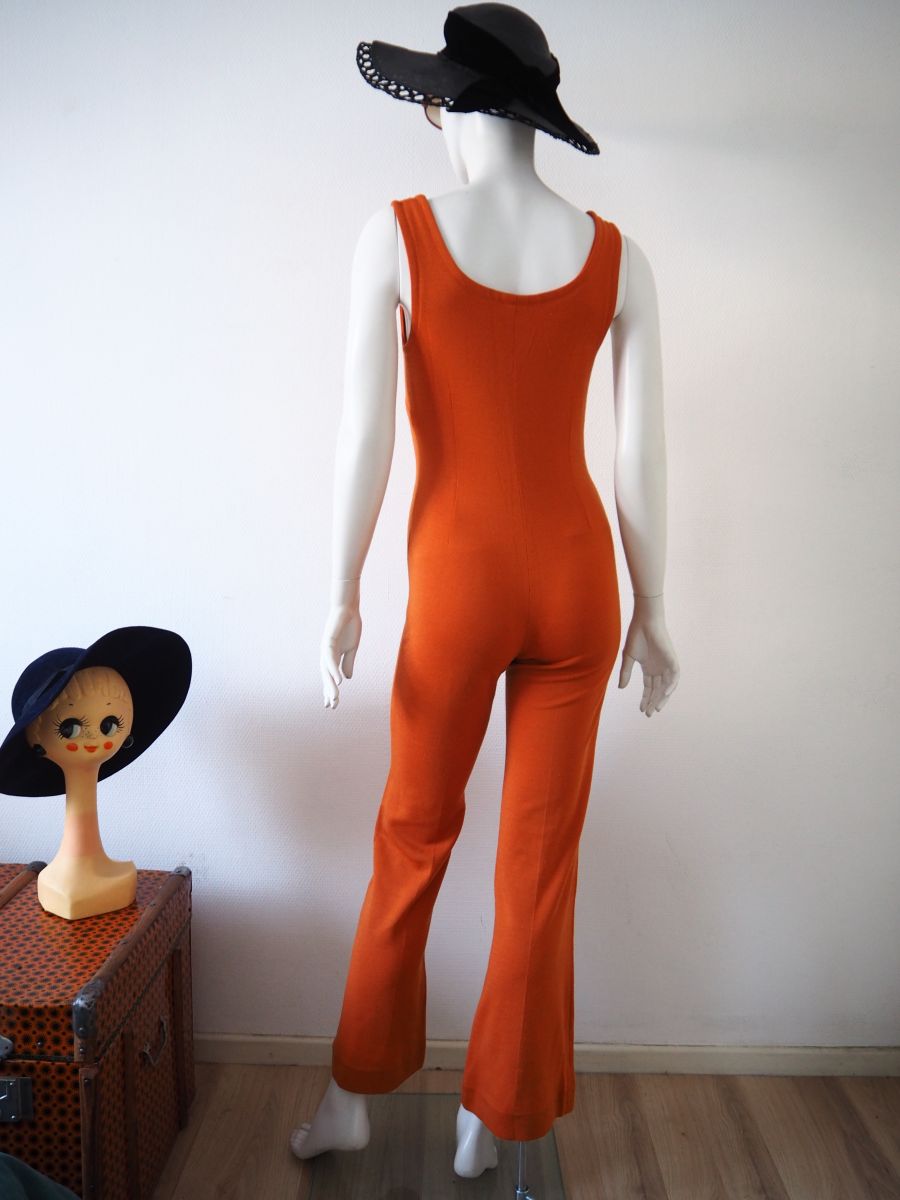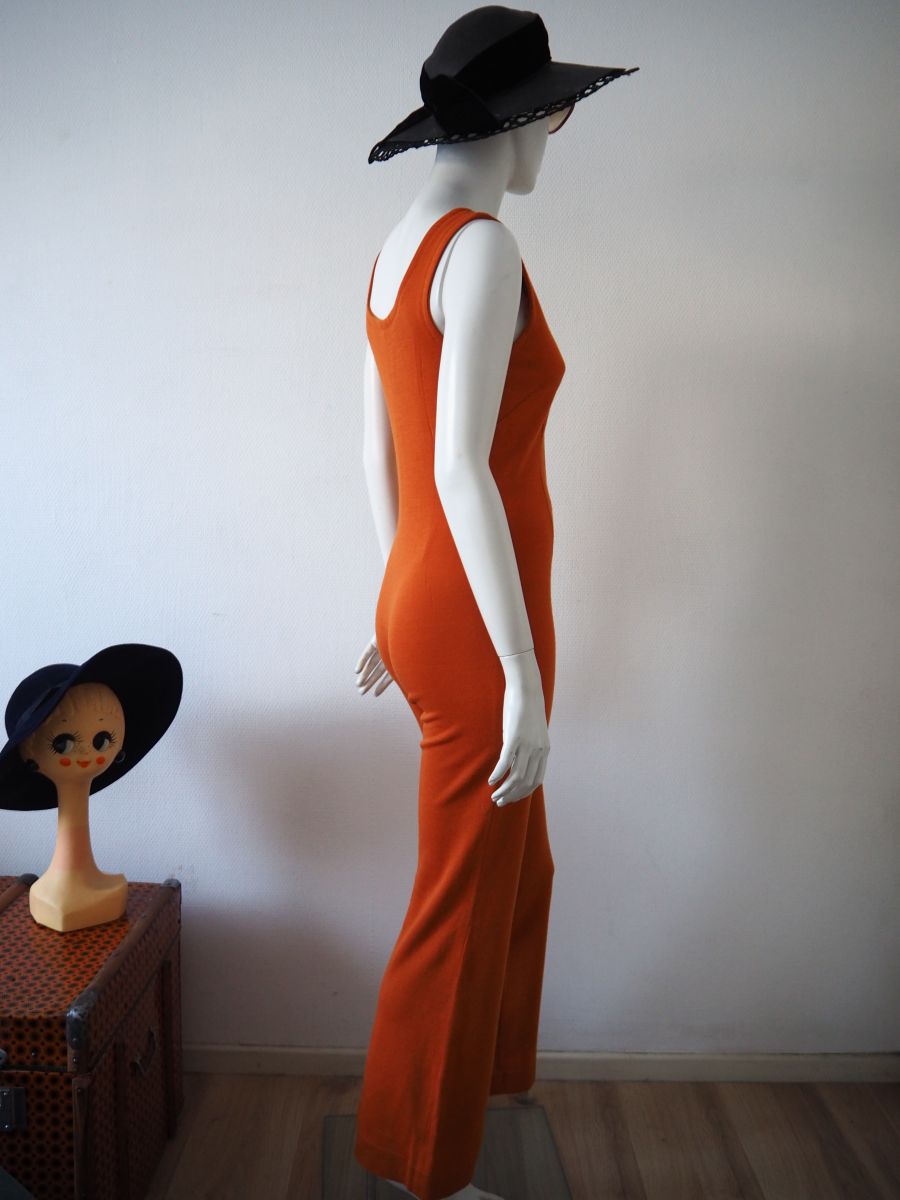 Sublime combinaison pantalon pattes d'éléphant orange de la marque CIMAZUR datant des années 1970.