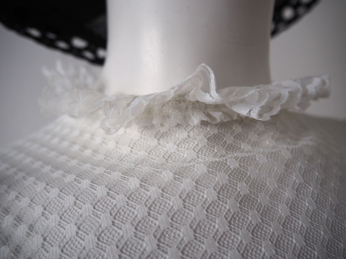 Col haut avec des froufrous en dentelle ajourée.